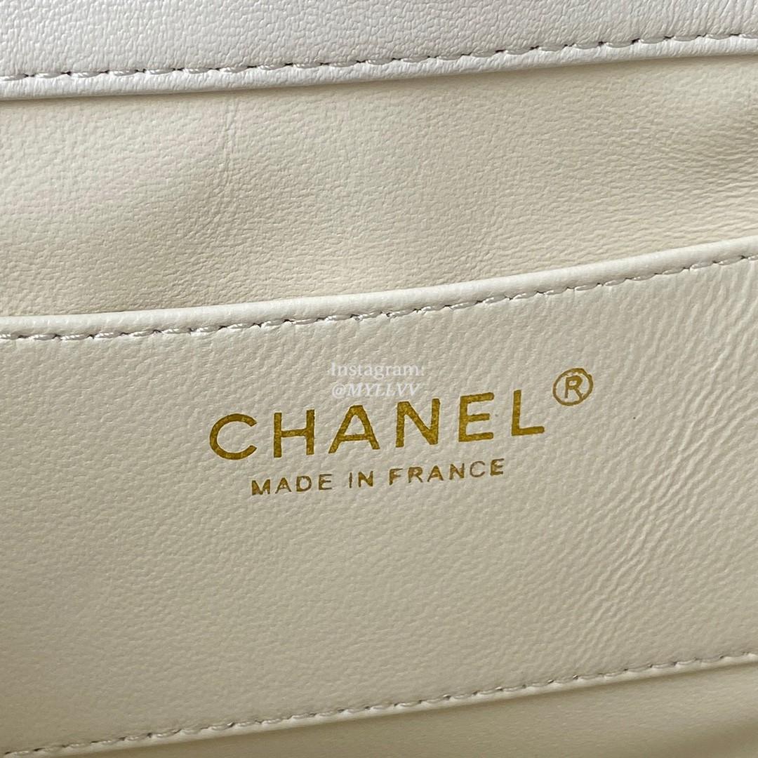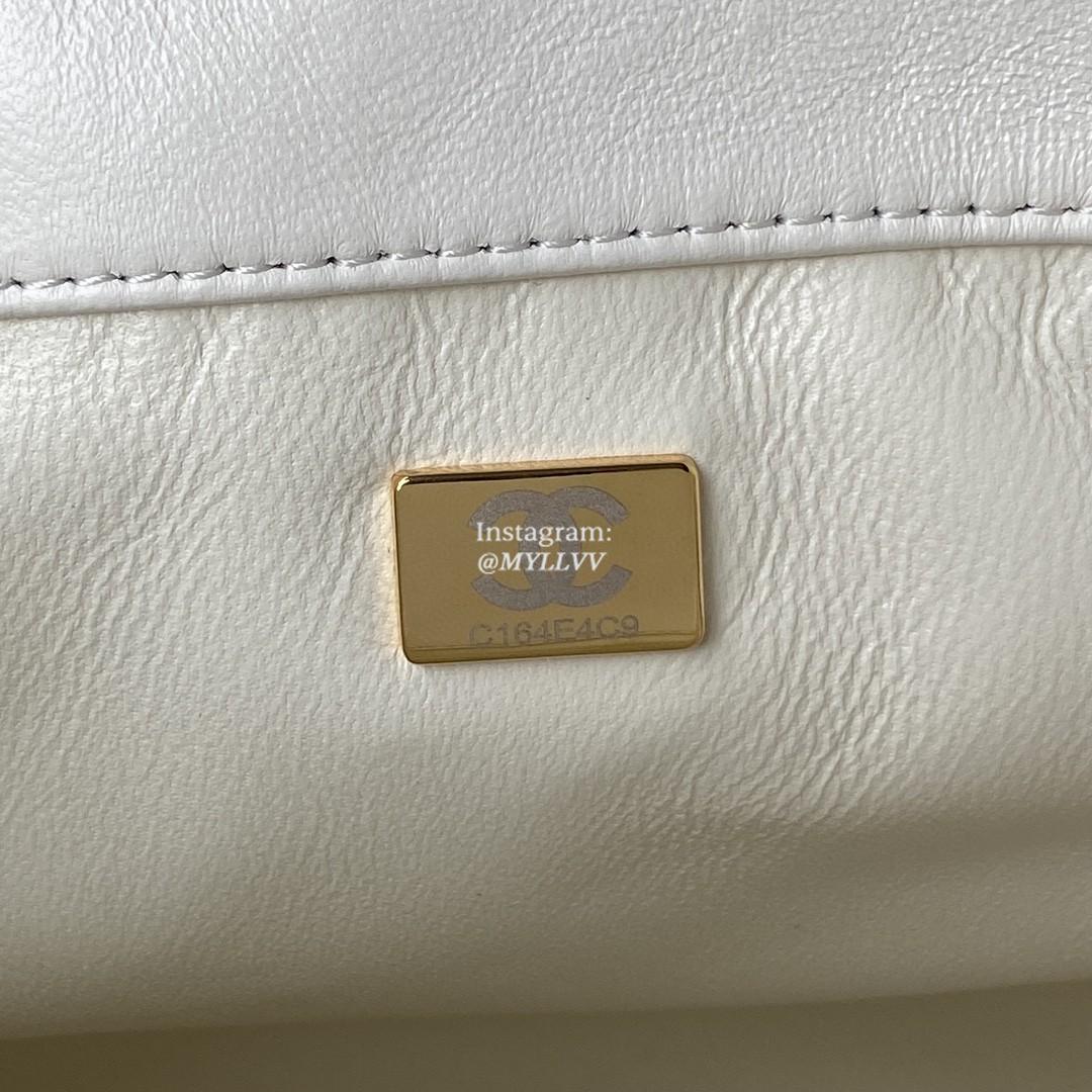 Top Quality Version:MYLLVV » Chanel Diamond Plaid Lambskin Handle Bucket Bag White With Gold AS3117