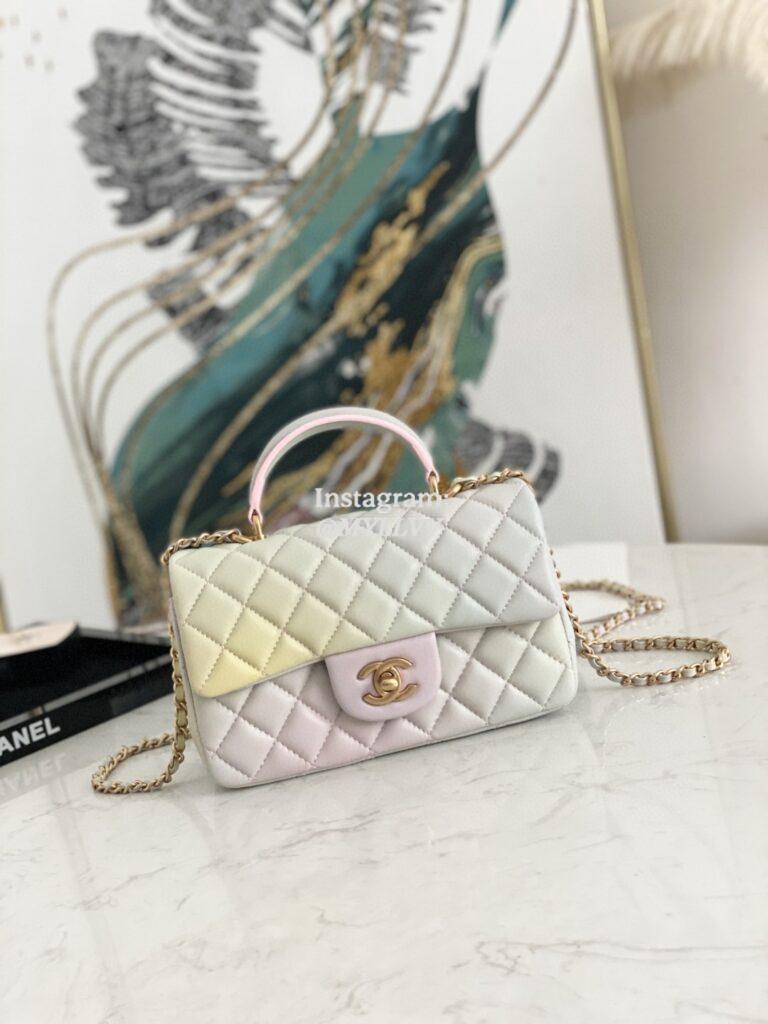 Top Quality Version:MYLLVV » Chanel Diamond Plaid Lambskin Handle Classic Flap Bag Gradient White With Gold AS2431