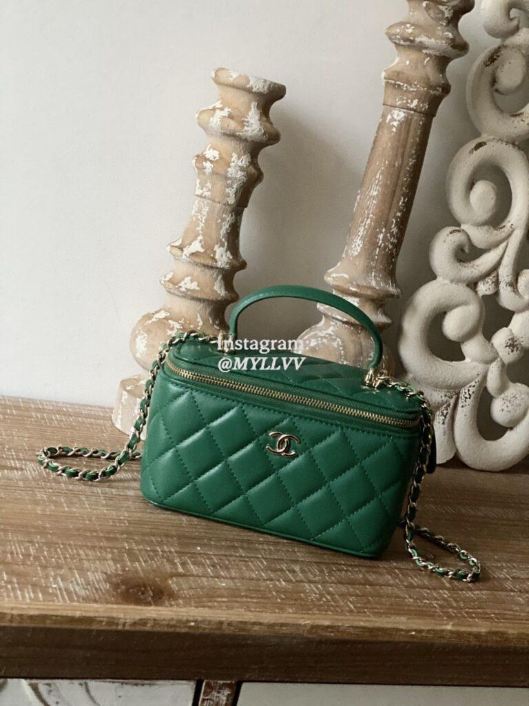 Top Quality Version:MYLLVV » Chanel Diamond Plaid Lambskin Handle Cosmetic Bag Green With Gold 81211