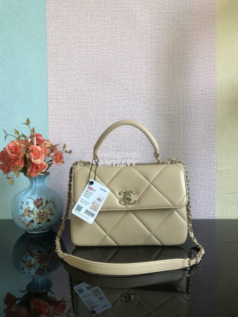 Top Quality Version:MYLLVV » Chanel Diamond Plaid Lambskin Handle Flap Bag Apricot With Gold 92236