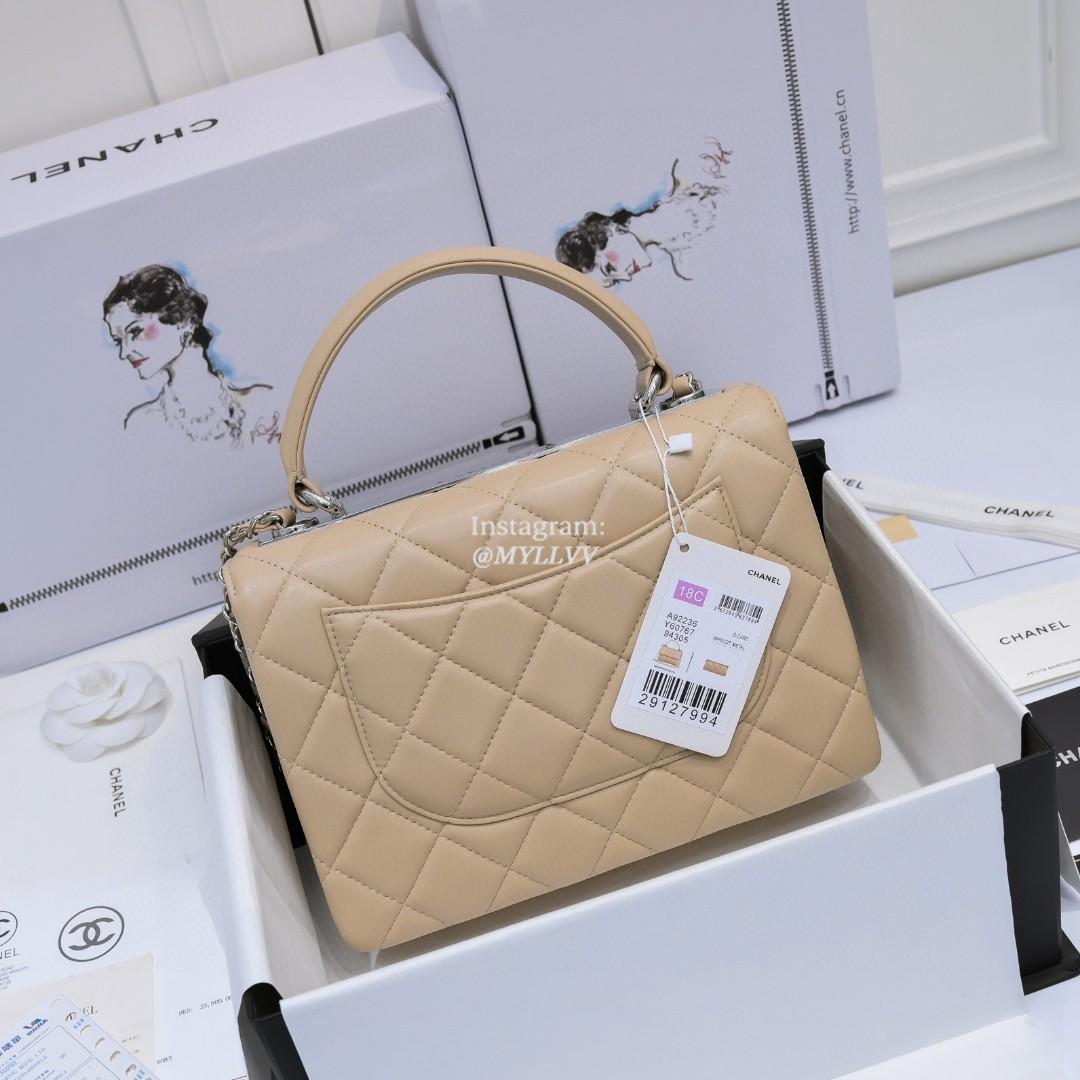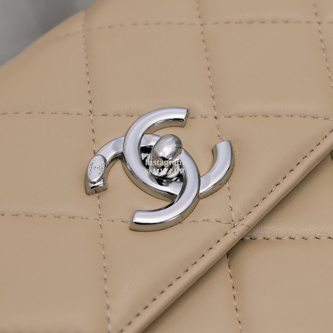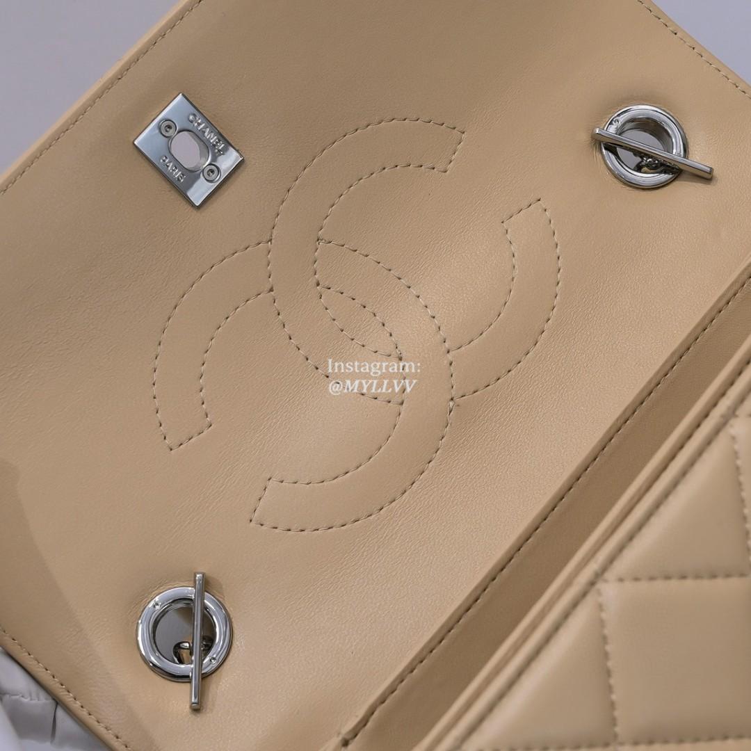 Top Quality Version:MYLLVV » Chanel Diamond Plaid Lambskin Handle Flap Bag Apricot With Silver AS92236