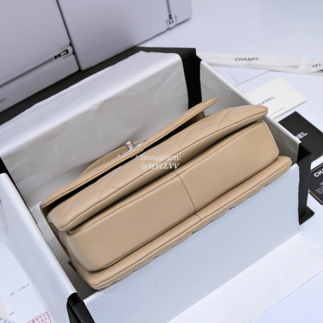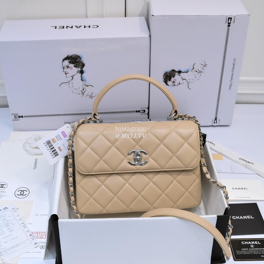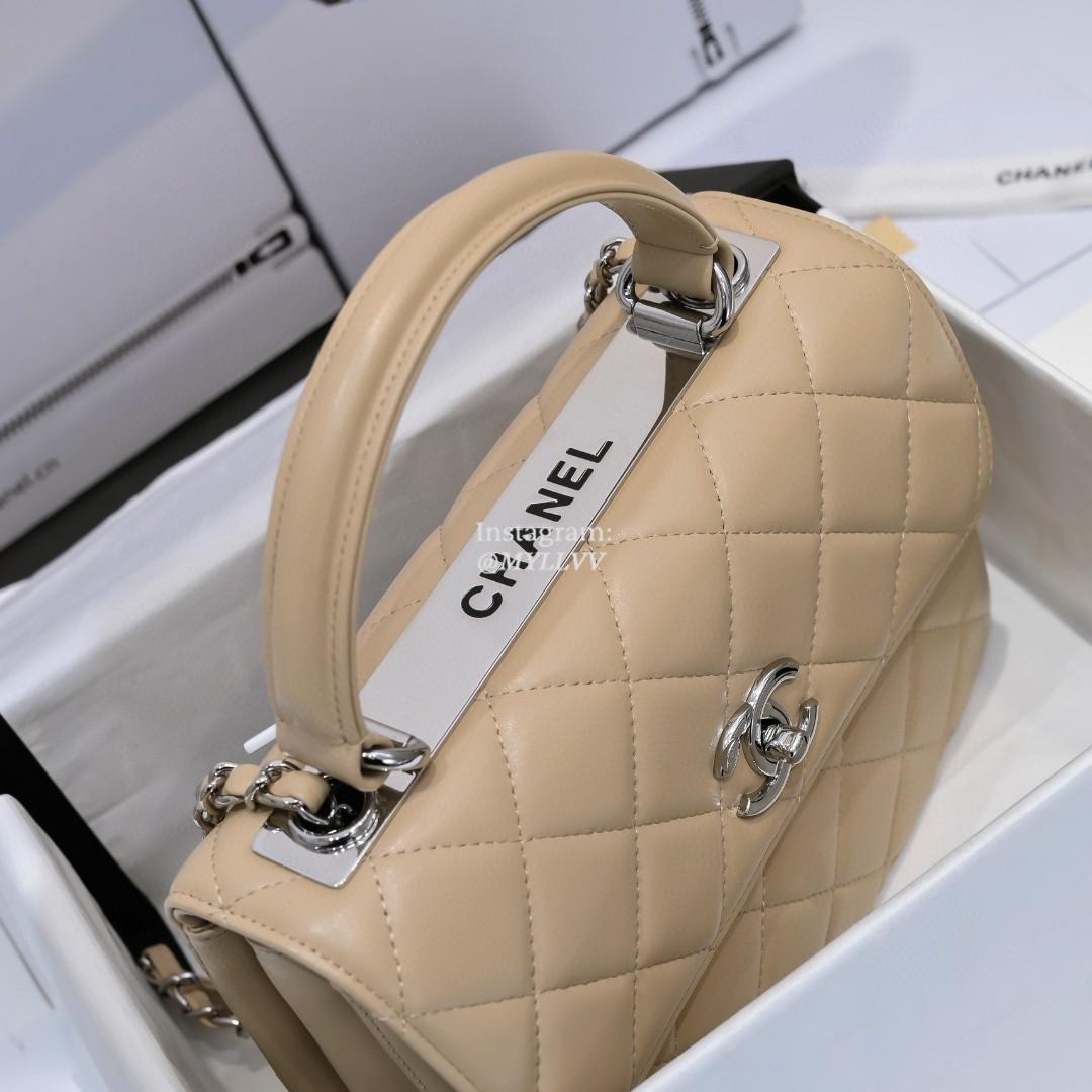 Top Quality Version:MYLLVV » Chanel Diamond Plaid Lambskin Handle Flap Bag Apricot With Silver AS92236