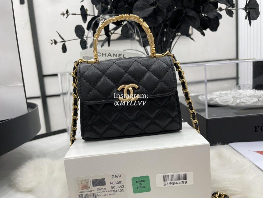 Top Quality Version:MYLLVV » Chanel Diamond Plaid Lambskin Handle Flap Bag Black With Gold A68093