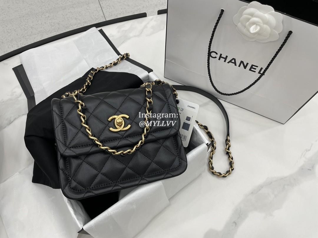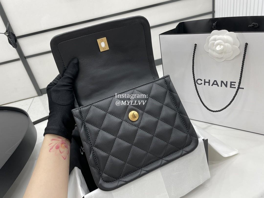 Top Quality Version:MYLLVV » Chanel Diamond Plaid Lambskin Handle Flap Bag Black With Gold AS2054