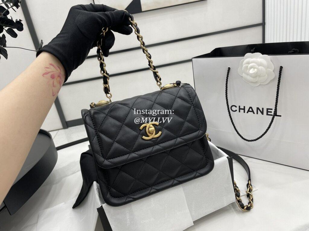 Top Quality Version:MYLLVV » Chanel Diamond Plaid Lambskin Handle Flap Bag Black With Gold AS2054