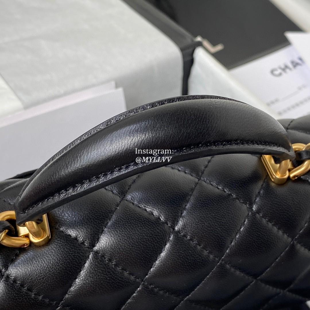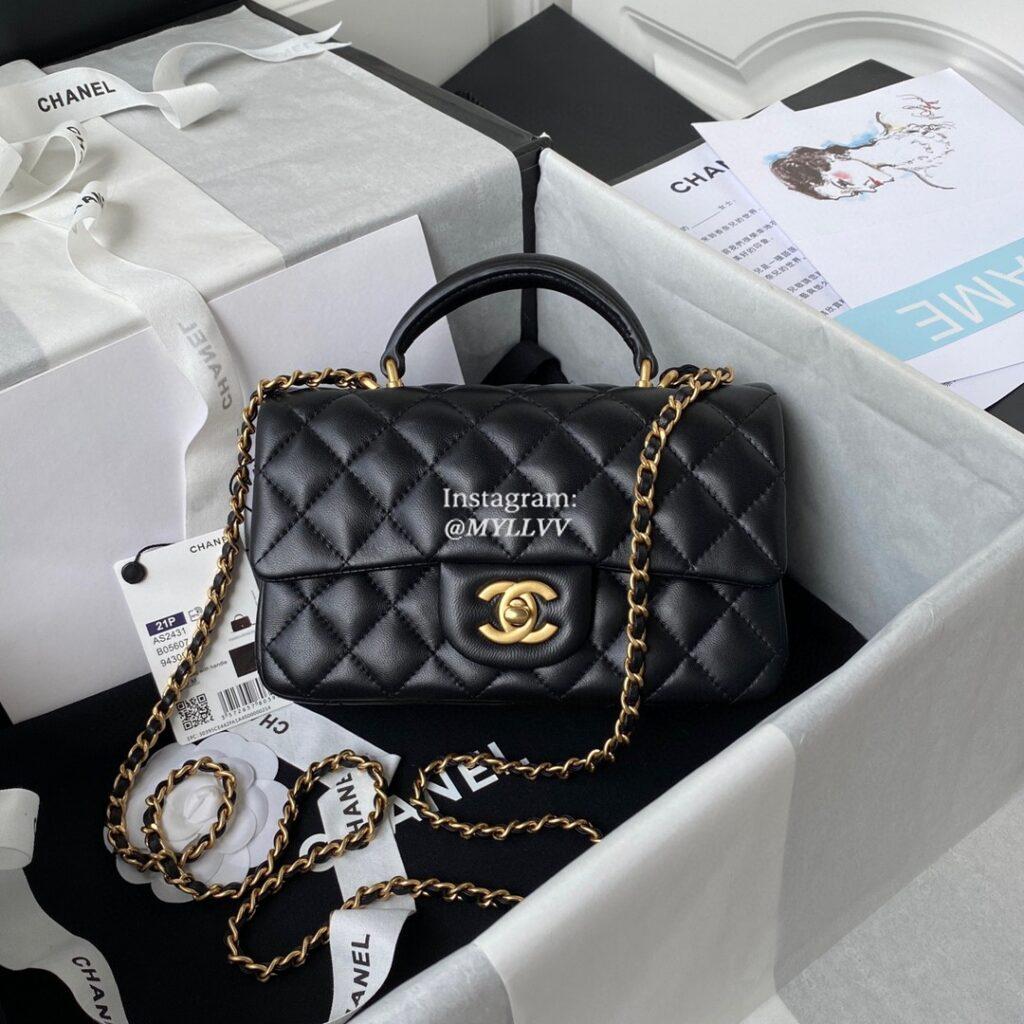 Top Quality Version:MYLLVV » Chanel Diamond Plaid Lambskin Handle Flap Bag Black With Gold AS2431