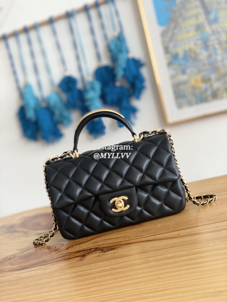 Top Quality Version:MYLLVV » Chanel Diamond Plaid Lambskin Handle Flap Bag Black With Gold AS2431