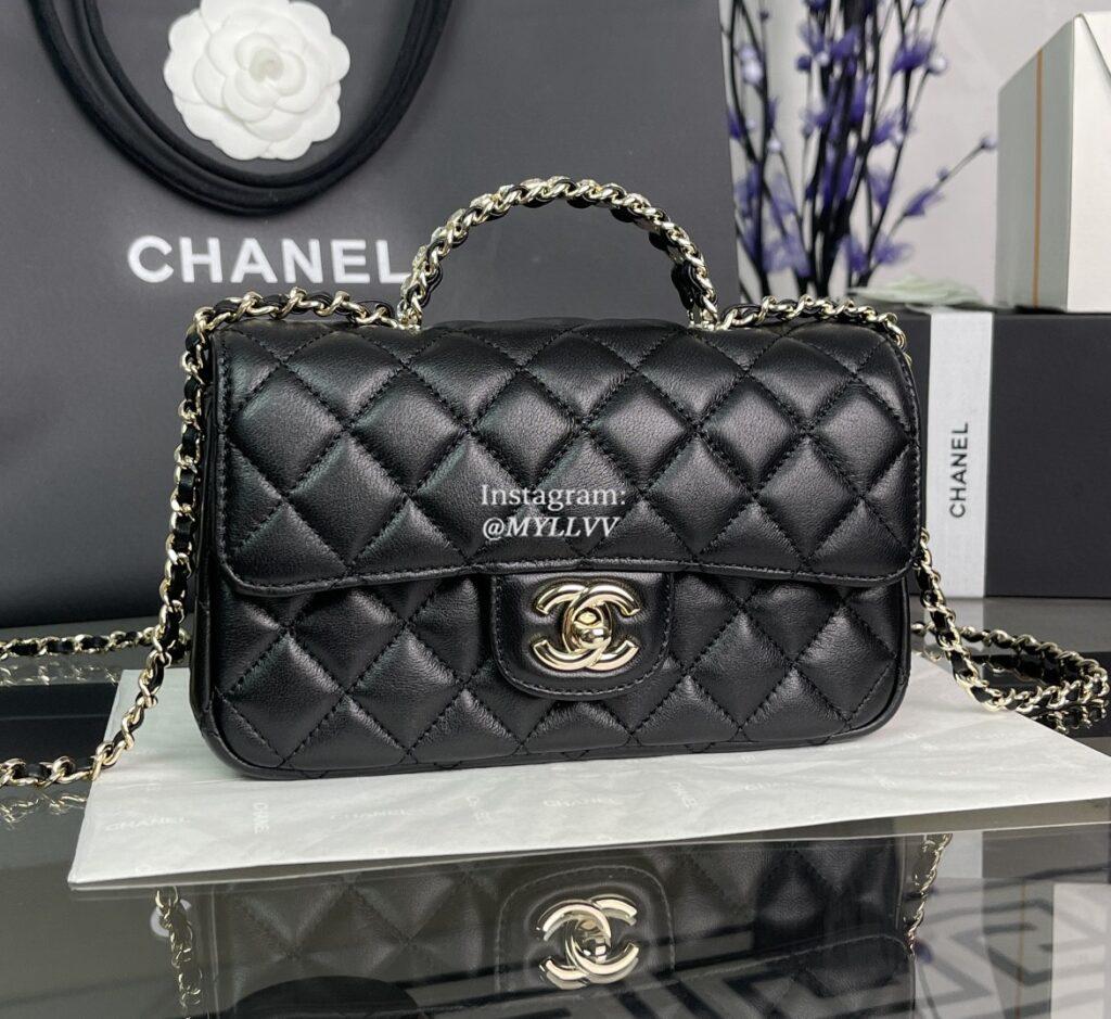 Top Quality Version:MYLLVV » Chanel Diamond Plaid Lambskin Handle Flap Bag Black With Gold AS4141