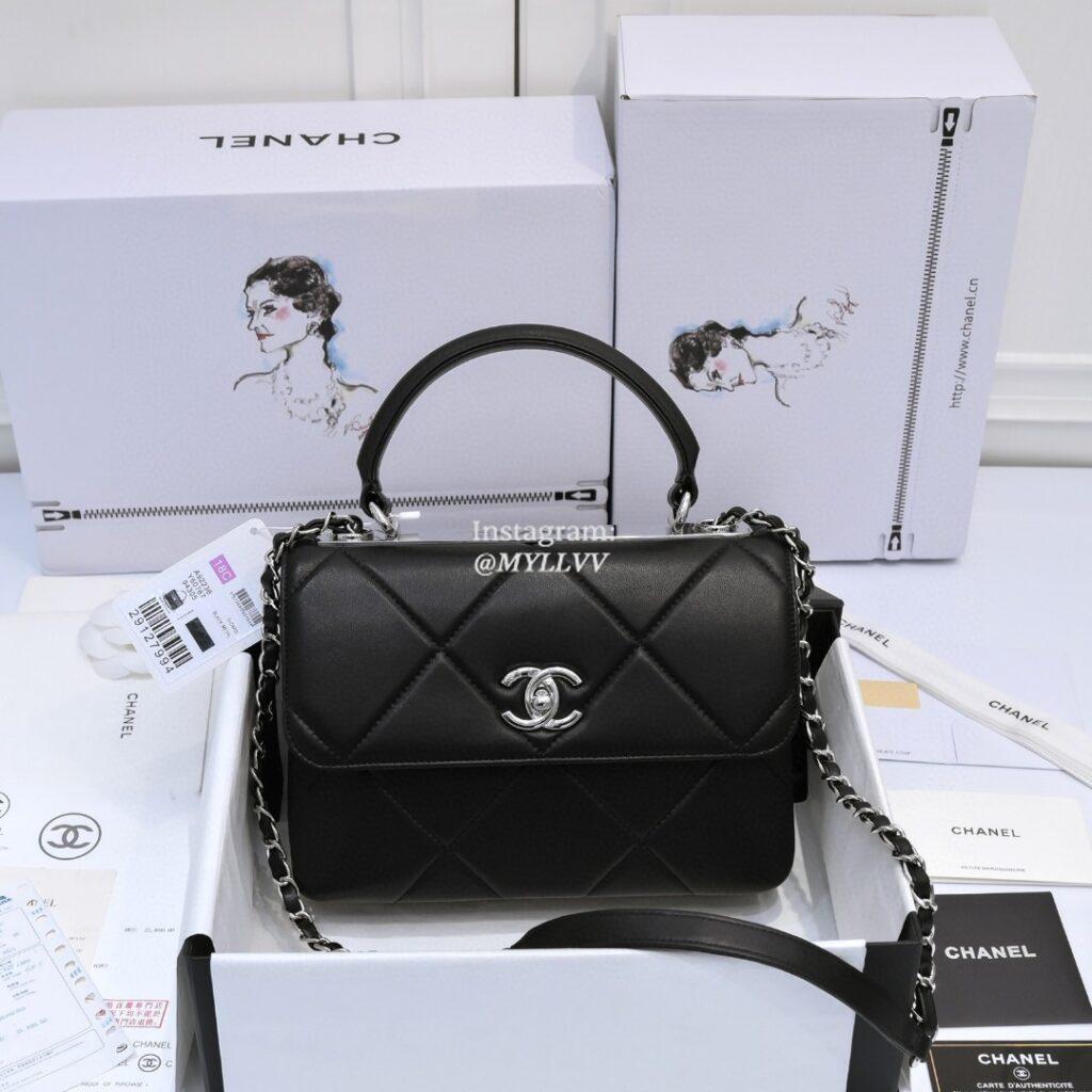 Top Quality Version:MYLLVV » Chanel Diamond Plaid Lambskin Handle Flap Bag Black With Silver AS92236