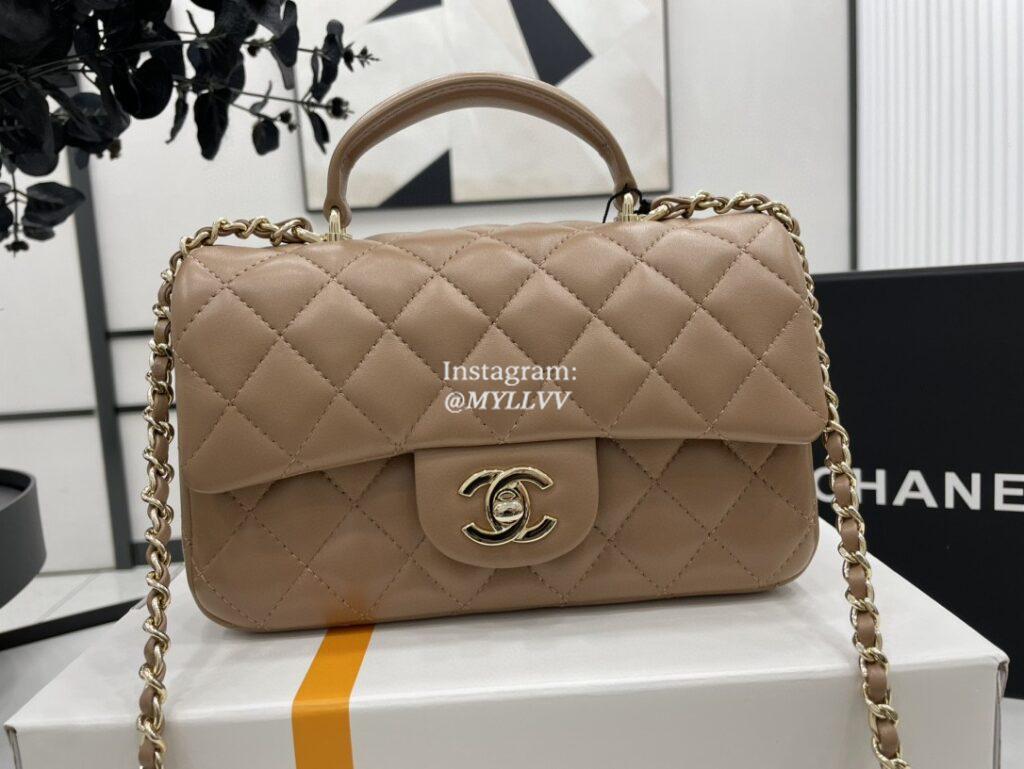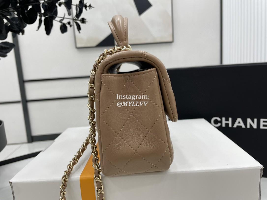 Top Quality Version:MYLLVV » Chanel Diamond Plaid Lambskin Handle Flap Bag Caramel With Gold AS2431