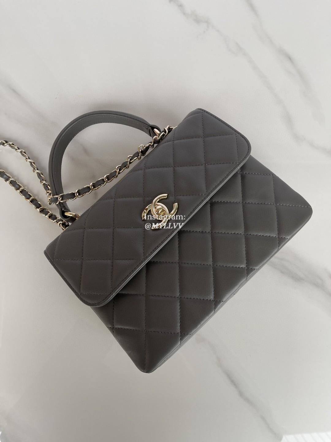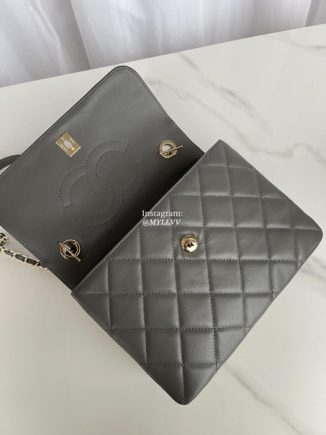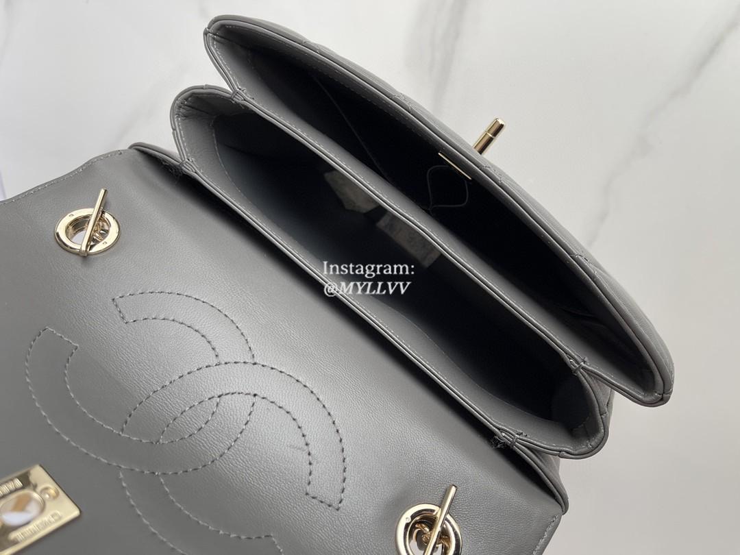 Top Quality Version:MYLLVV » Chanel Diamond Plaid Lambskin Handle Flap Bag Dark Grey With Gold 92236