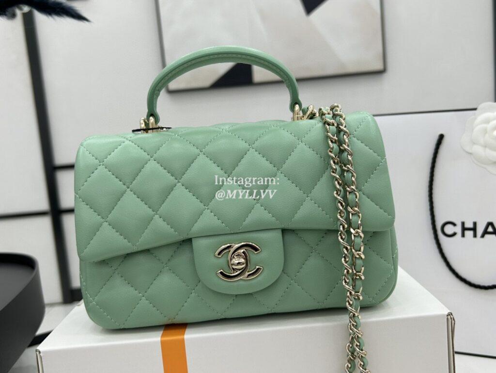 Top Quality Version:MYLLVV » Chanel Diamond Plaid Lambskin Handle Flap Bag Green With Gold AS2431