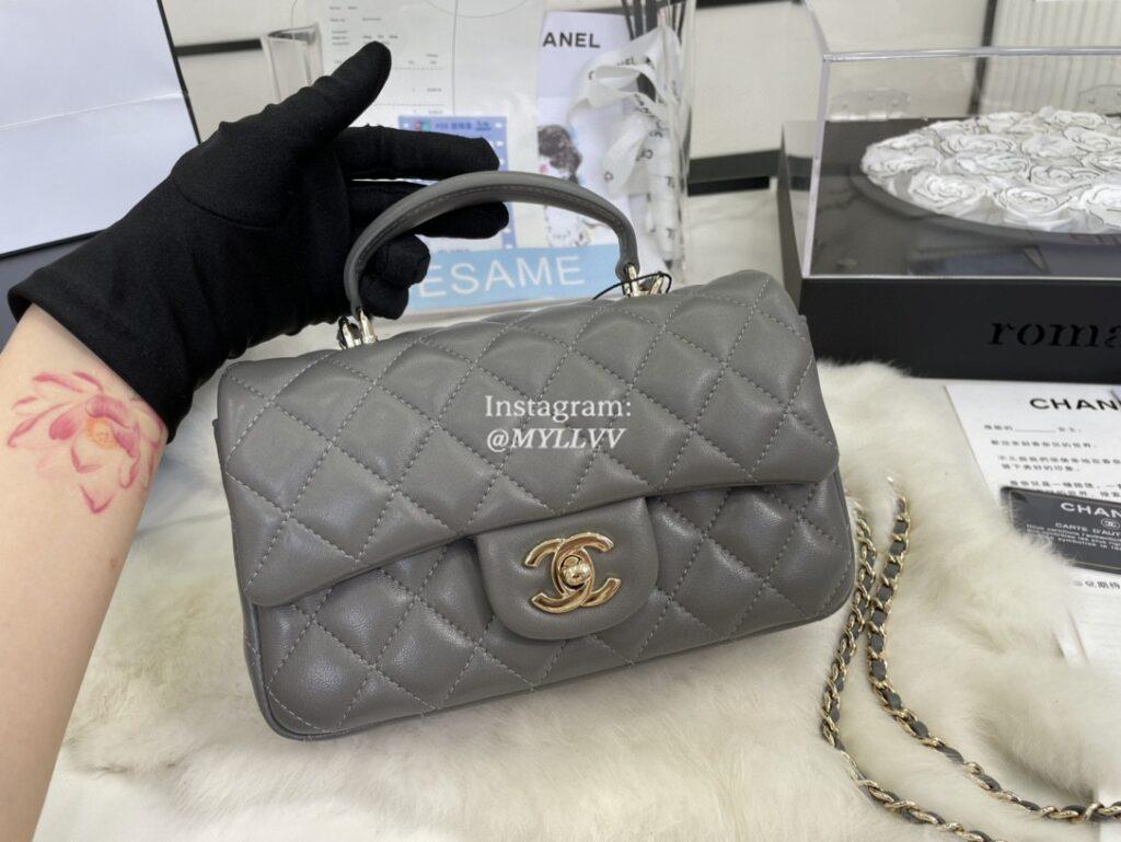 Top Quality Version:MYLLVV » Chanel Diamond Plaid Lambskin Handle Flap Bag Dark Grey With Gold AS2431
