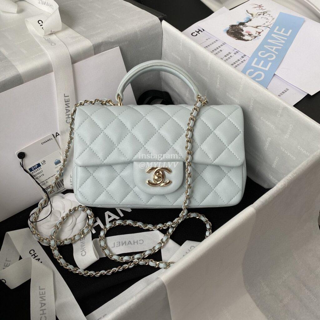 Top Quality Version:MYLLVV » Chanel Diamond Plaid Lambskin Handle Flap Bag Light Blue With Shallow Gold AS2431