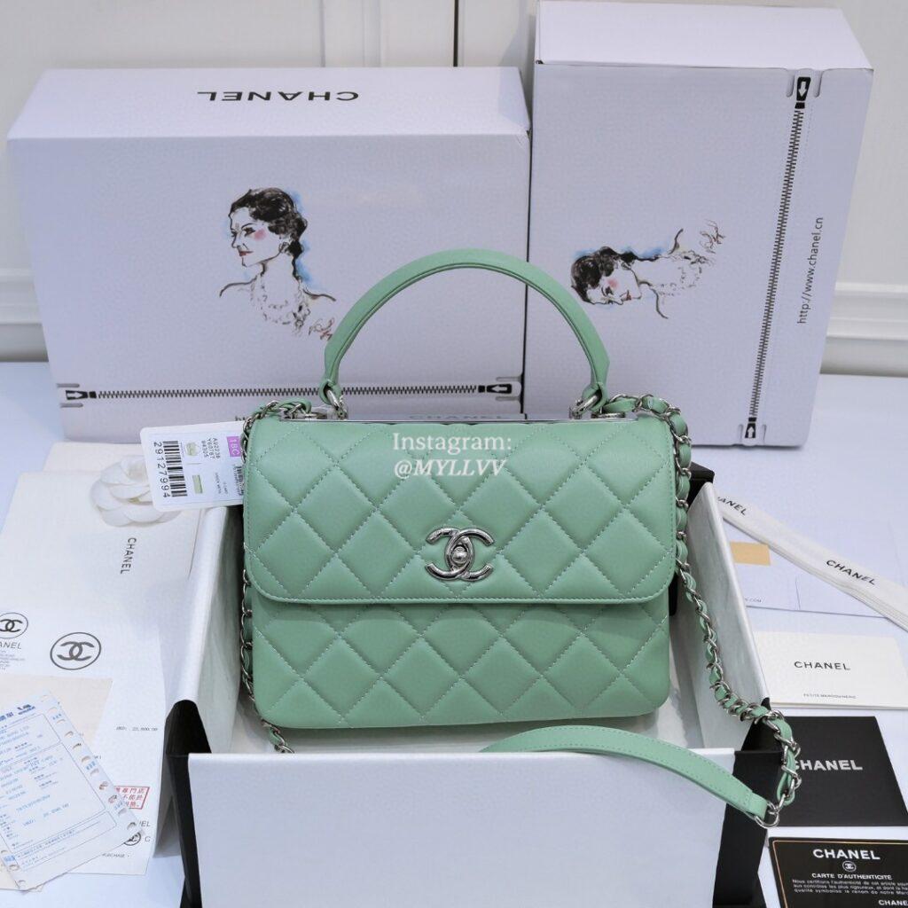 Top Quality Version:MYLLVV » Chanel Diamond Plaid Lambskin Handle Flap Bag Mint Green With Silver AS92236