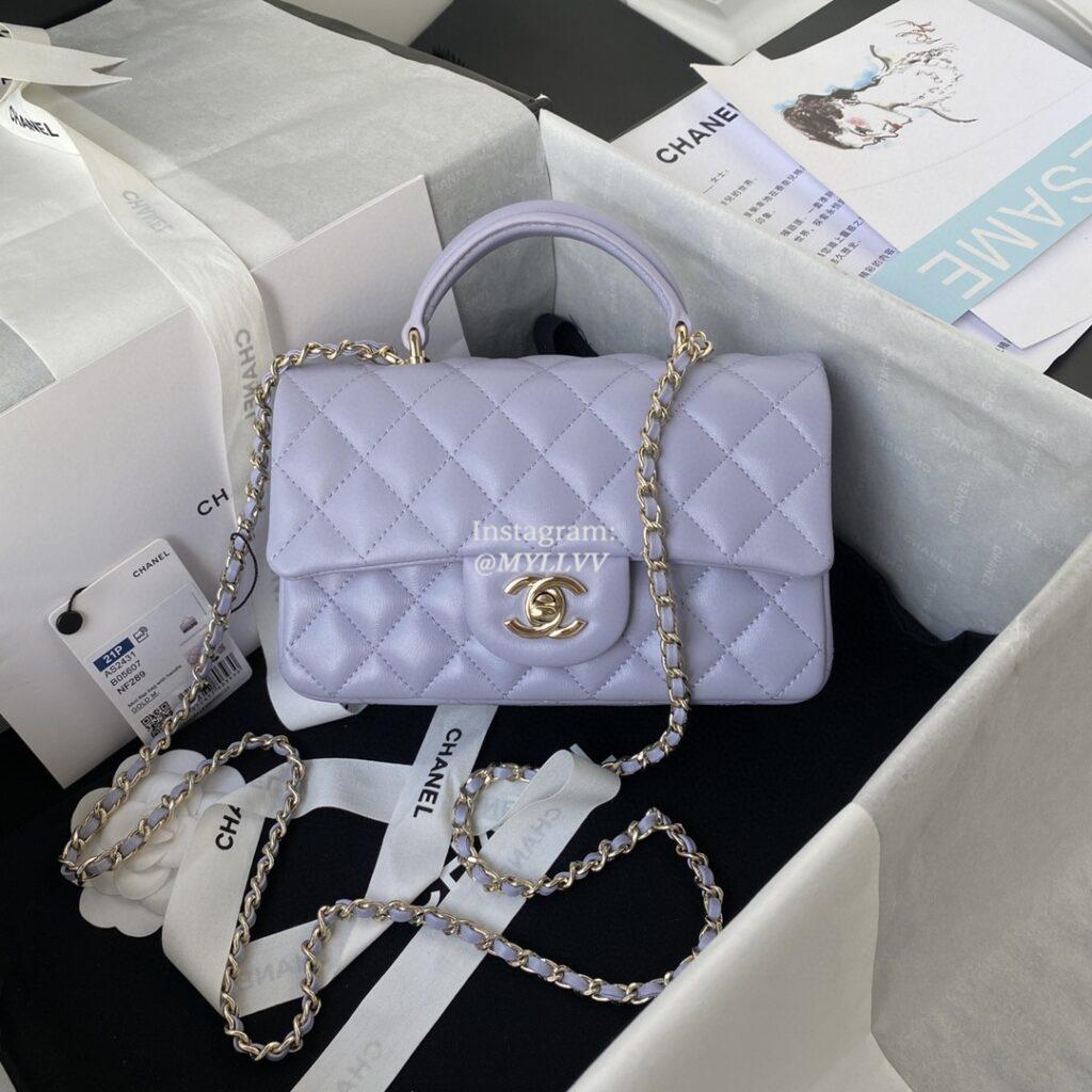 Top Quality Version:MYLLVV » Chanel Diamond Plaid Lambskin Handle Flap Bag Purple With Shallow Gold AS2431