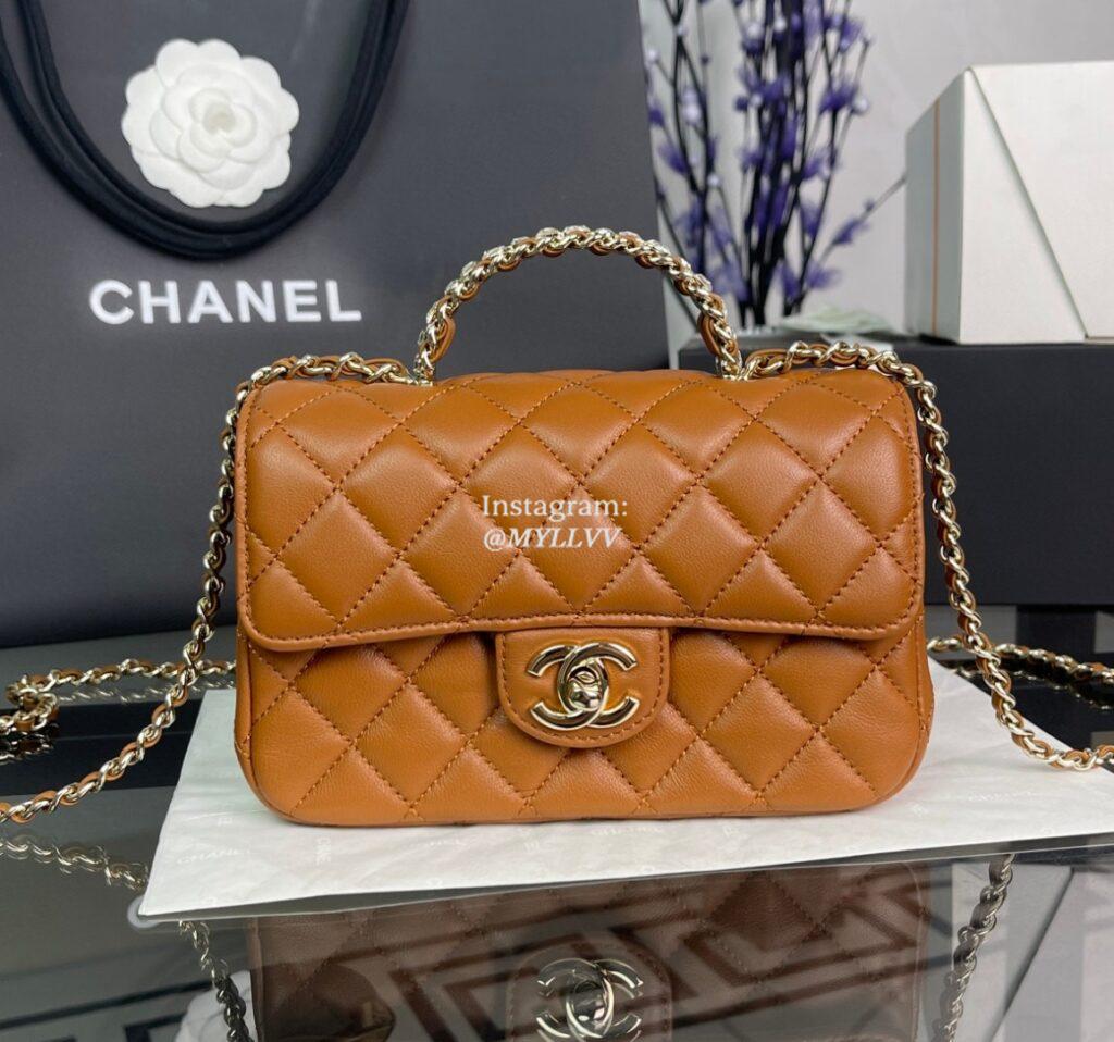 Top Quality Version:MYLLVV » Chanel Diamond Plaid Lambskin Handle Flap Bag Red With Gold AS4140
