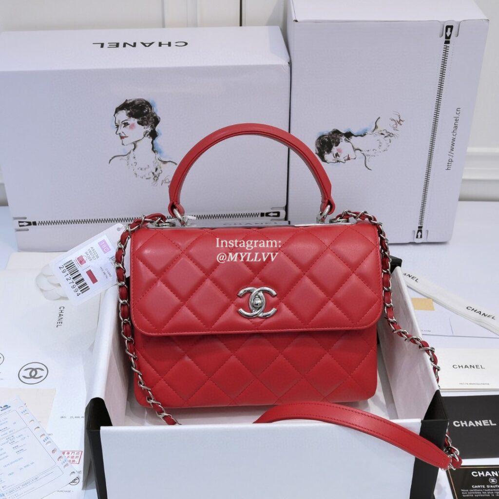 Top Quality Version:MYLLVV » Chanel Diamond Plaid Lambskin Handle Flap Bag Red With Silver AS92236