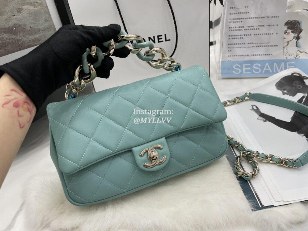 Top Quality Version:MYLLVV » Chanel Diamond Plaid Lambskin Handle Flap Bag Sky Blue With Gold AS1354