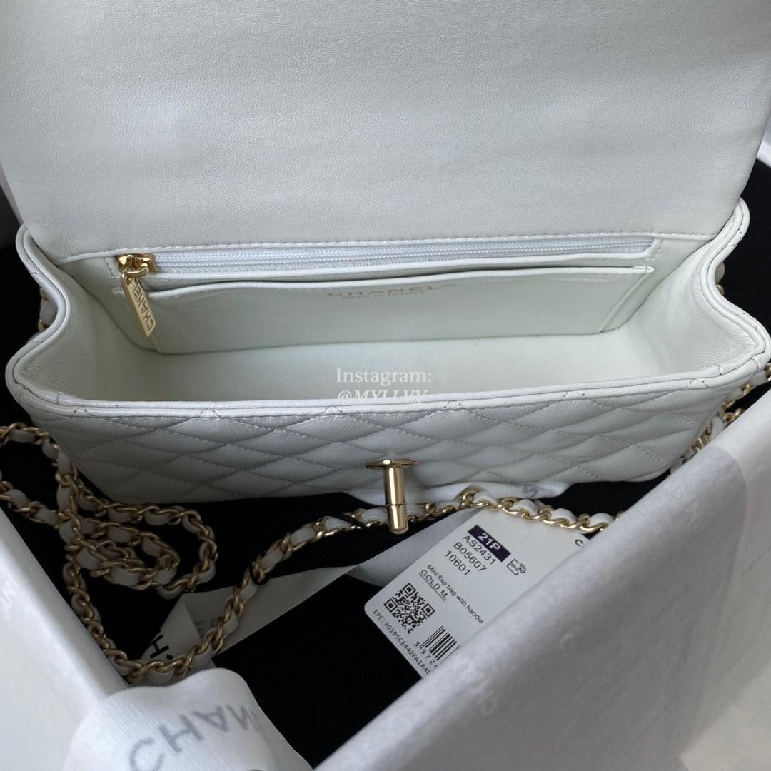 Top Quality Version:MYLLVV » Chanel Diamond Plaid Lambskin Handle Flap Bag White With Shallow Gold AS2431