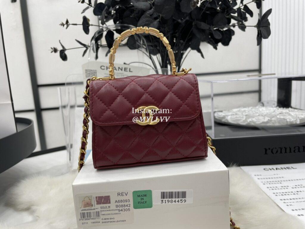 Top Quality Version:MYLLVV » Chanel Diamond Plaid Lambskin Handle Flap Bag Wine Red With Gold A68093