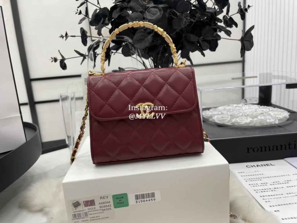 Top Quality Version:MYLLVV » Chanel Diamond Plaid Lambskin Handle Flap Bag Wine Red With Gold A68094