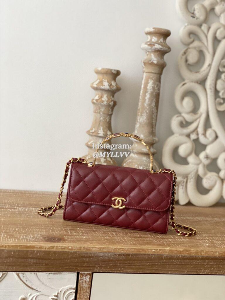 Top Quality Version:MYLLVV » Chanel Diamond Plaid Lambskin Handle Flap Bag Wine Red With Gold AP81214