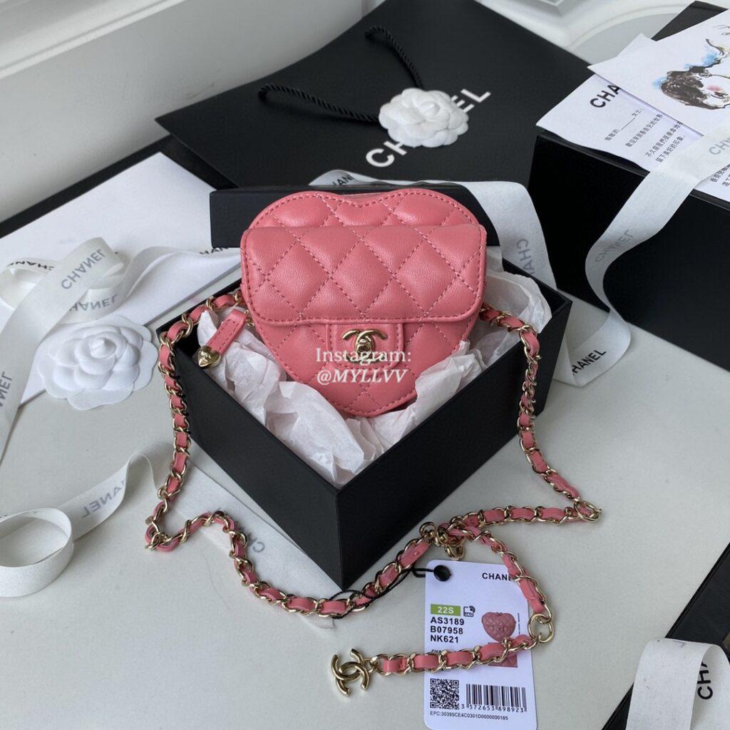 Top Quality Version:MYLLVV » Chanel Diamond Plaid Lambskin Heart-shaped Shoulder Bag Pink With Gold AS3189