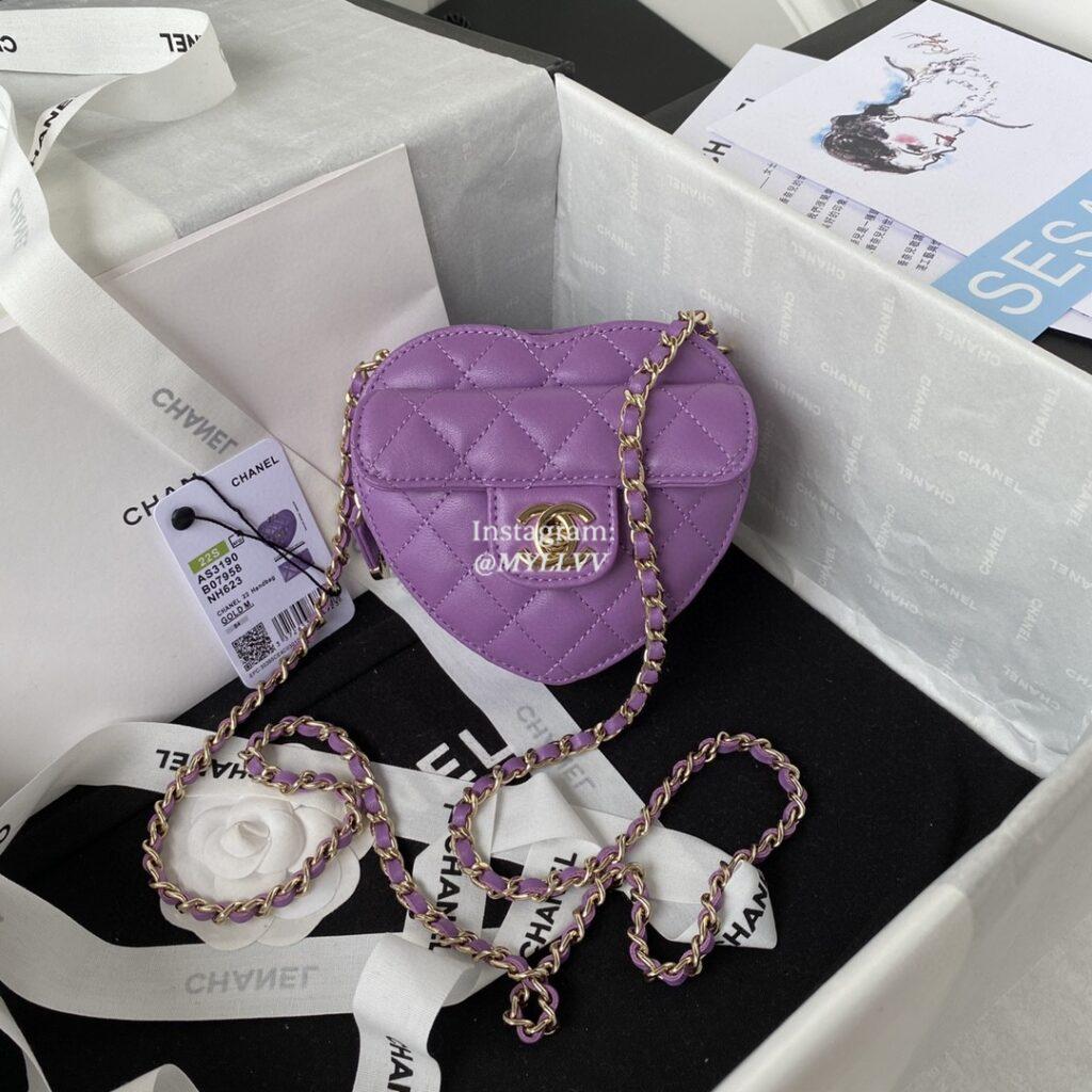 Top Quality Version:MYLLVV » Chanel Diamond Plaid Lambskin Heart-shaped Shoulder Bag Purple With Gold AS3190