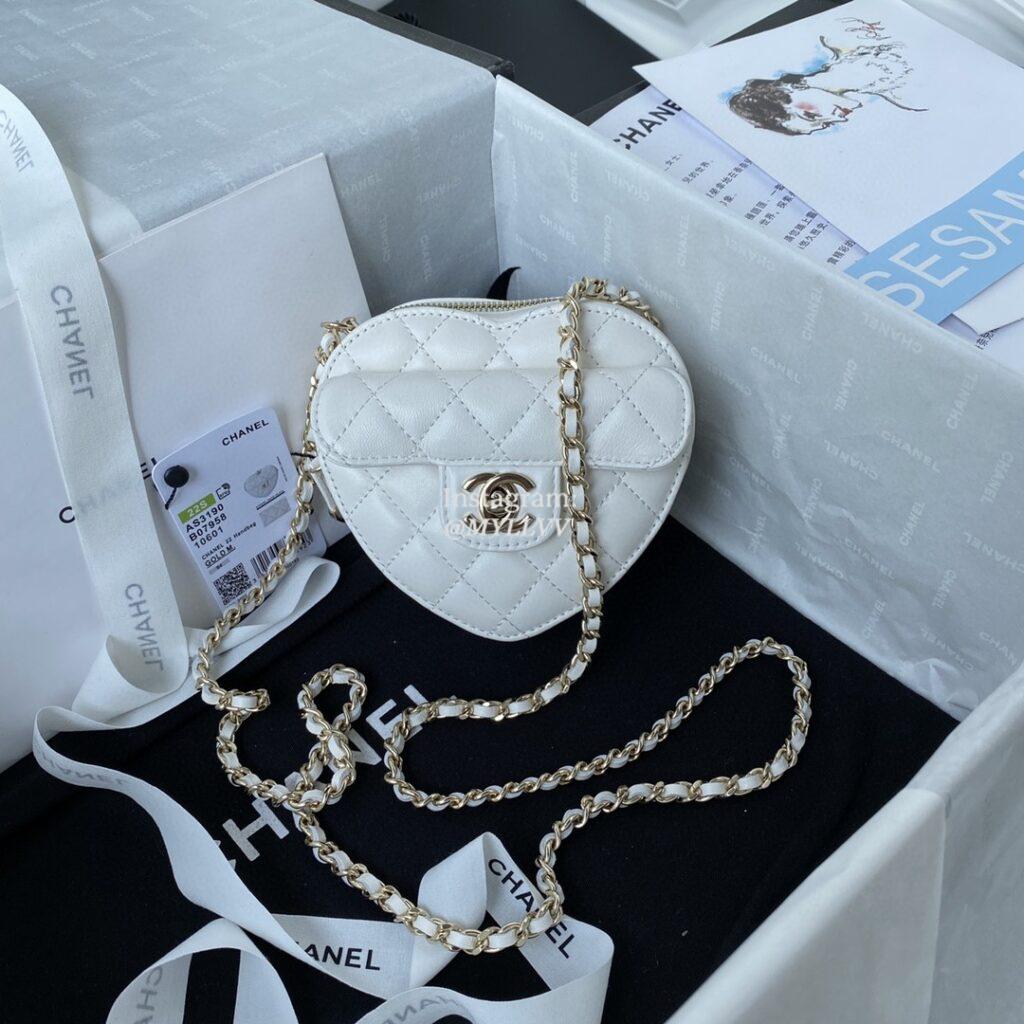 Top Quality Version:MYLLVV » Chanel Diamond Plaid Lambskin Heart-shaped Shoulder Bag White With Gold AS3190