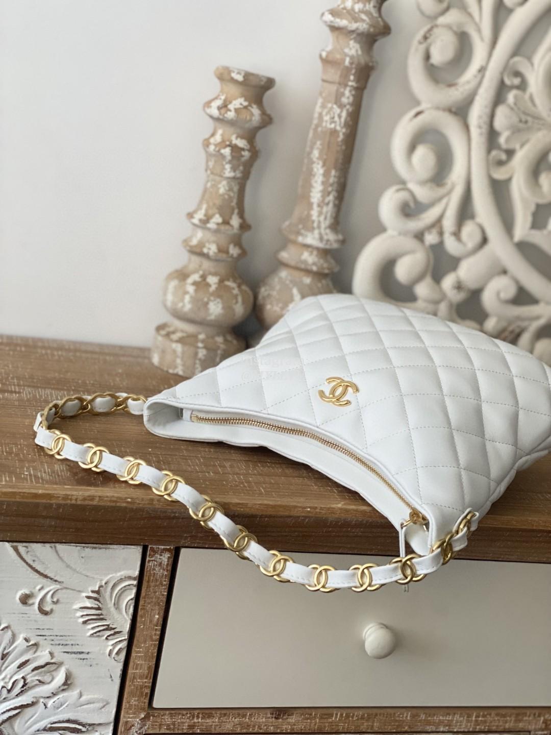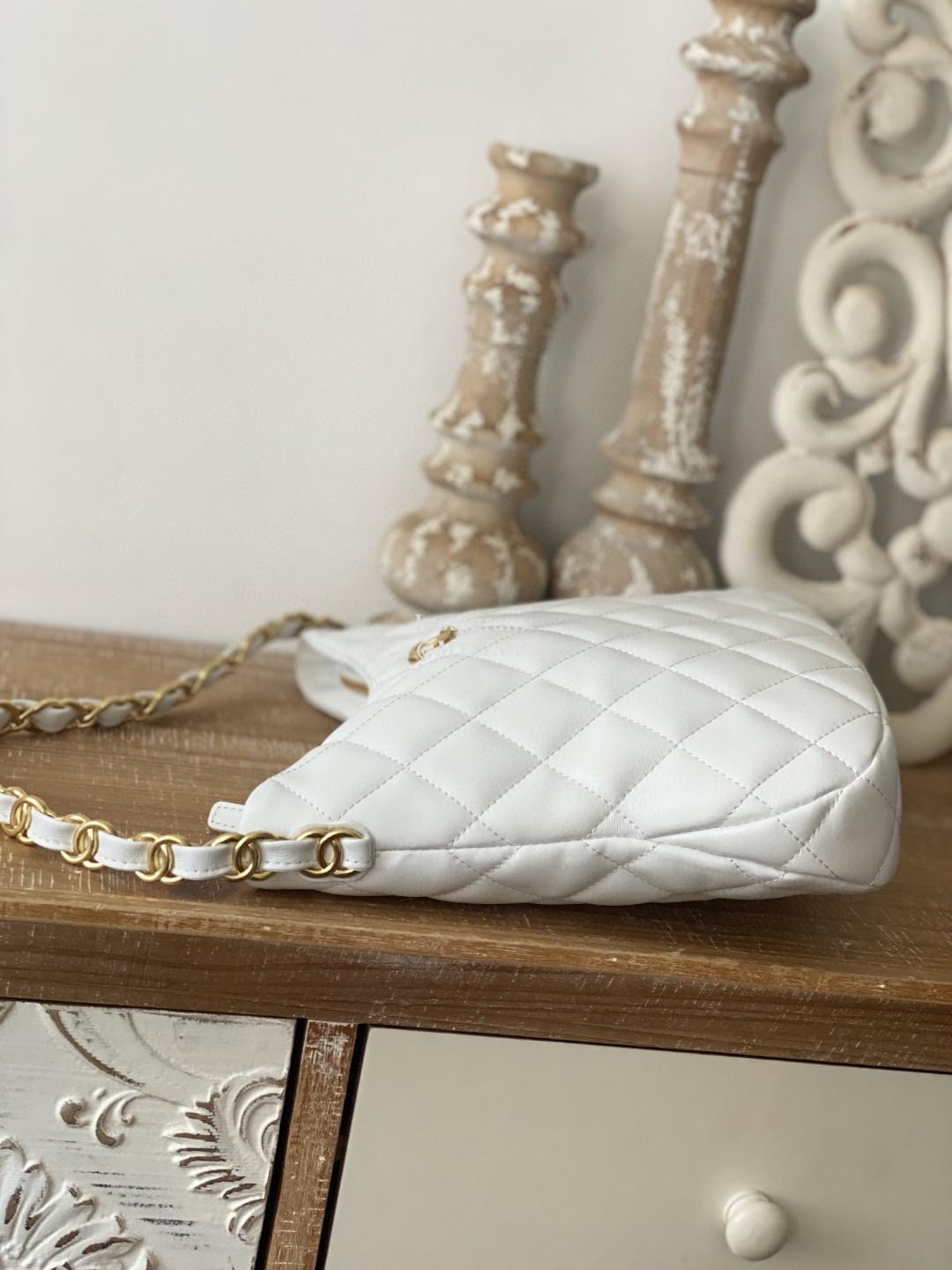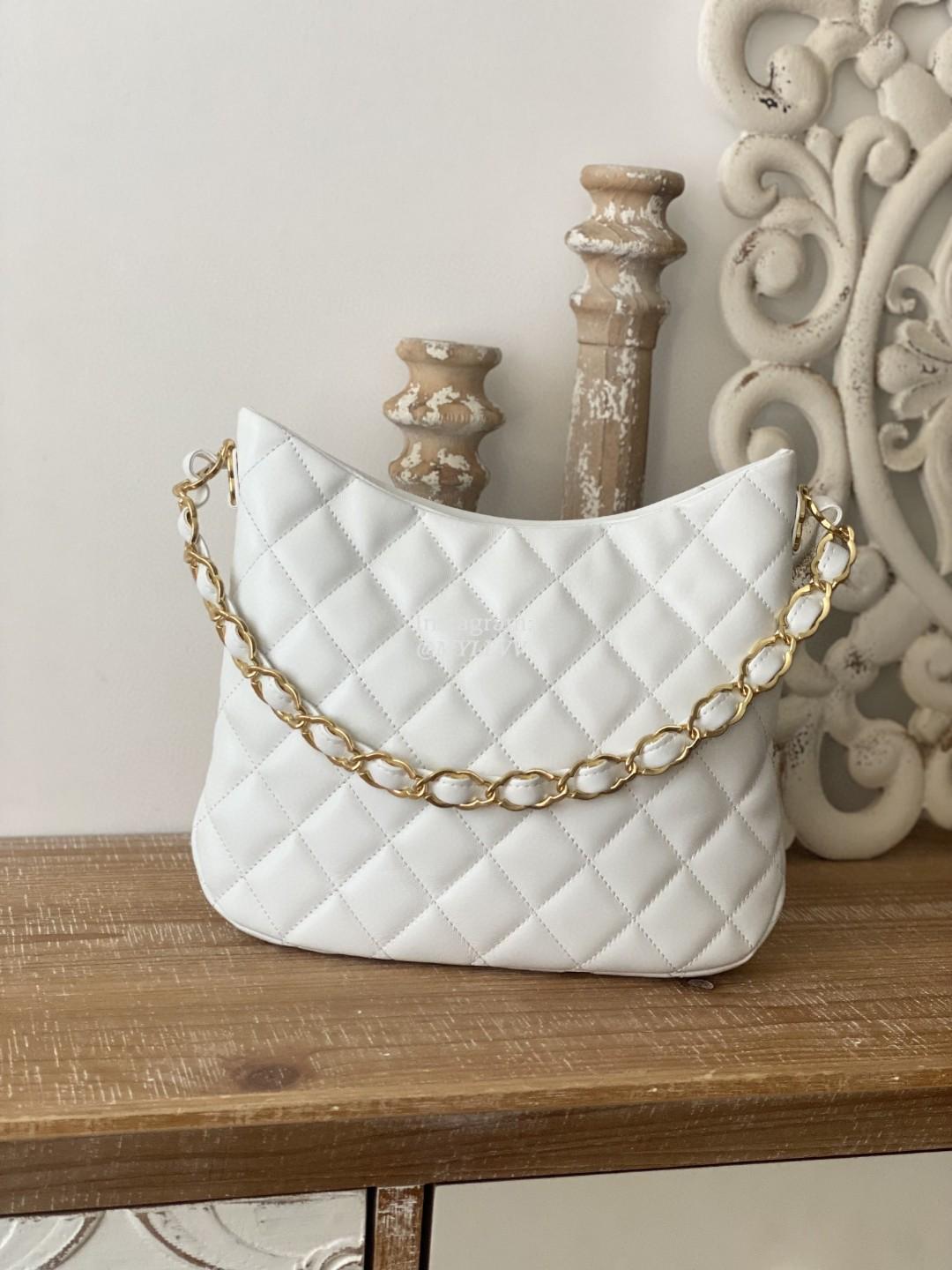 Dimension: 26.0 × 30.0 × 7.0 cm Top Quality Version:MYLLVV » Chanel Diamond Plaid Lambskin Hobo Bag White AS3631