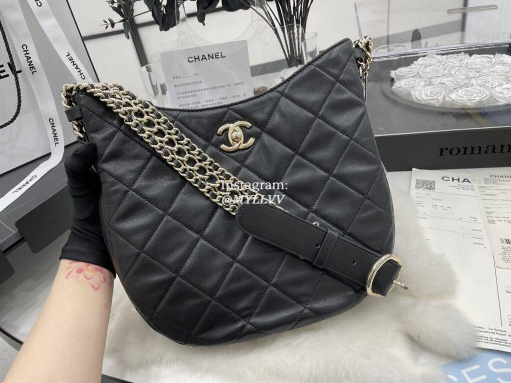 Top Quality Version:MYLLVV » Chanel Diamond Plaid Lambskin Hobo Shoulder Bag Black With Gold AS3101