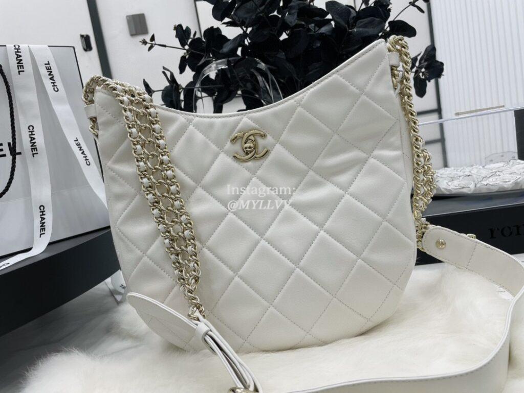 Top Quality Version:MYLLVV » Chanel Diamond Plaid Lambskin Hobo Shoulder Bag White With Gold AS3101
