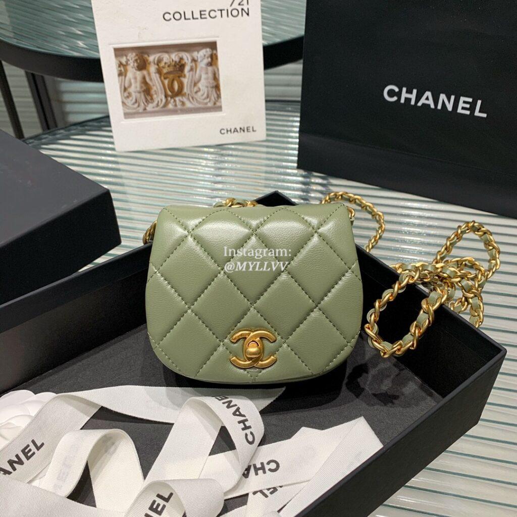 Top Quality Version:MYLLVV » Chanel Diamond Plaid Lambskin Horseshoe Bag Green With Gold AP2344