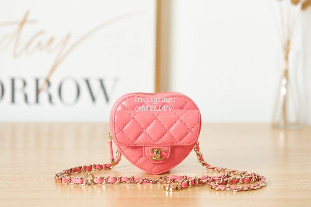 Top Quality Version:MYLLVV » Chanel Diamond Plaid Lambskin Love Shoulder Bag Peach Red With Gold AP2787