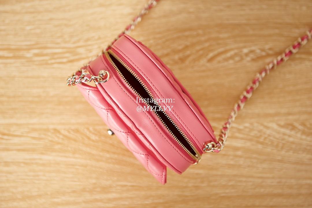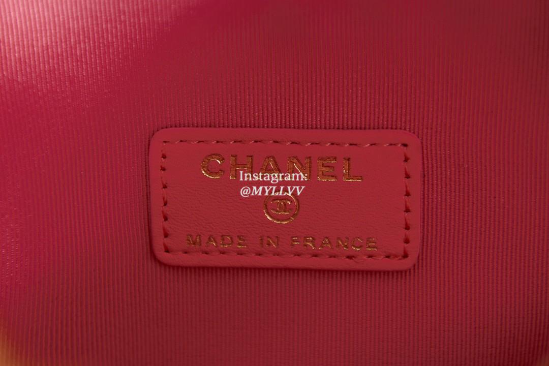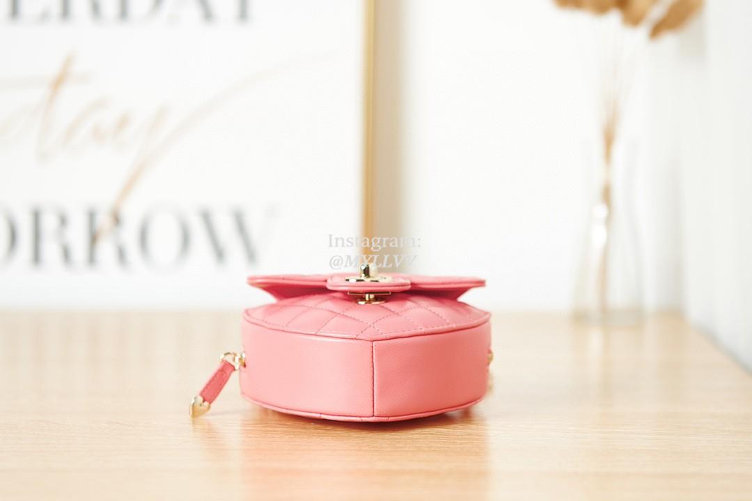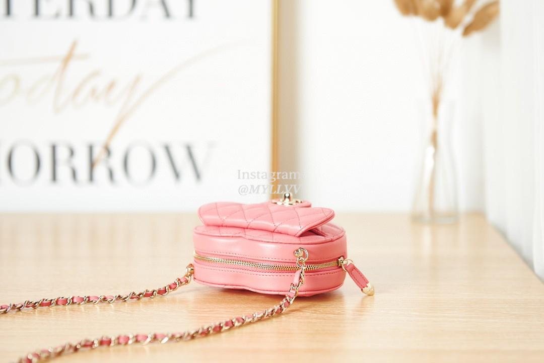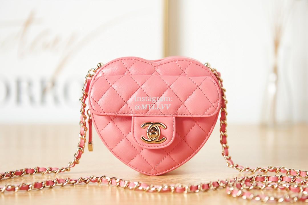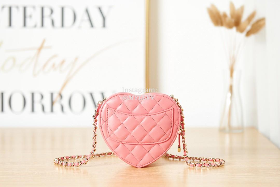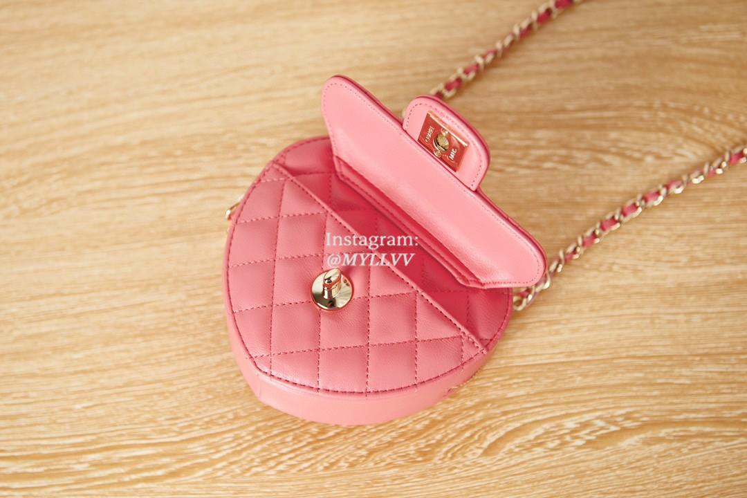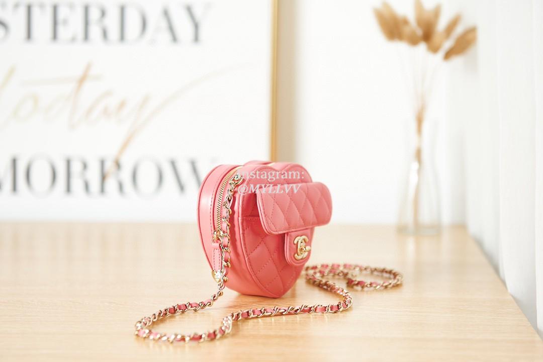 Top Quality Version:MYLLVV » Chanel Diamond Plaid Lambskin Love Shoulder Bag Peach Red With Gold AS2784