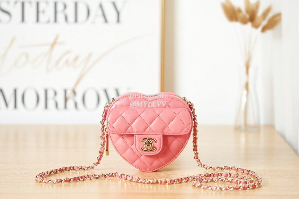 Top Quality Version:MYLLVV » Chanel Diamond Plaid Lambskin Love Shoulder Bag Peach Red With Gold AS2784