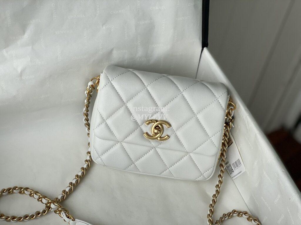 Top Quality Version:MYLLVV » Chanel Diamond Plaid Lambskin Messenger Bag White With Gold 2733