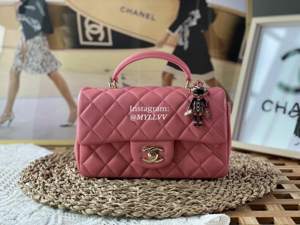 Top Quality Version:MYLLVV » Chanel Diamond Plaid Lambskin Mini Classic Flap Bag Rose Red With Gold 2413