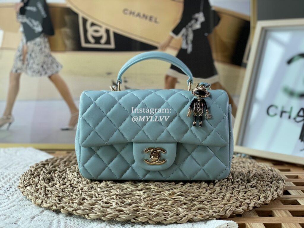 Top Quality Version:MYLLVV » Chanel Diamond Plaid Lambskin Mini Classic Flap Bag Sky Blue With Gold 2413