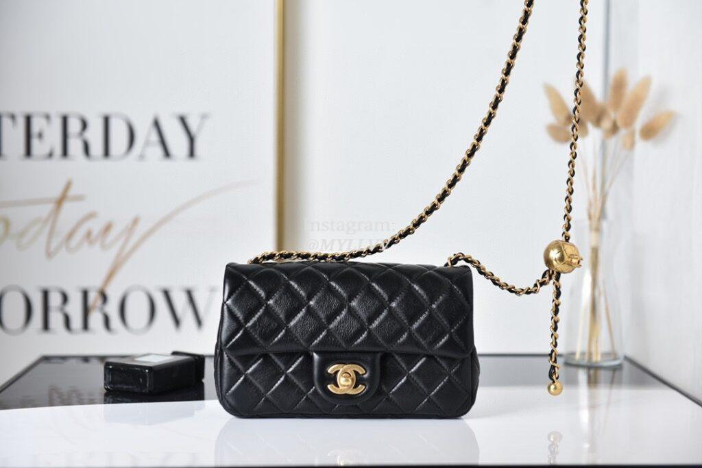 Top Quality Version:MYLLVV » Chanel Diamond Plaid Lambskin Mini Flap Bag Black With Gold AS1787