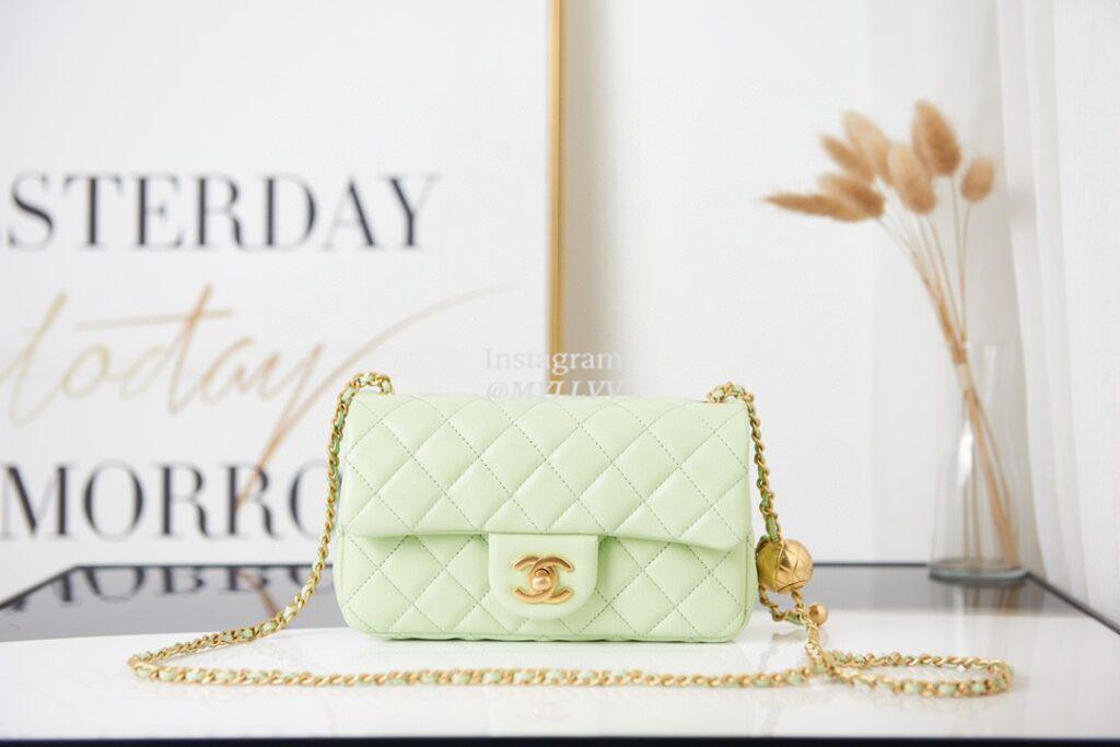 Top Quality Version:MYLLVV » Chanel Diamond Plaid Lambskin Mini Flap Bag Light Green With Gold AS1787