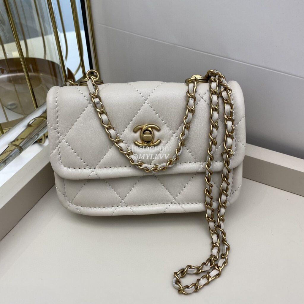 Top Quality Version:MYLLVV » Chanel Diamond Plaid Lambskin Mini Flap Bag White With Gold A81016