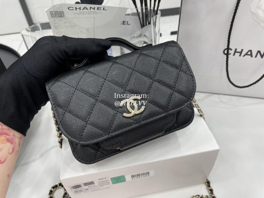 Top Quality Version:MYLLVV » Chanel Diamond Plaid Caviar Cowhide Mini Handle Flap Bag Black With Gold A68097