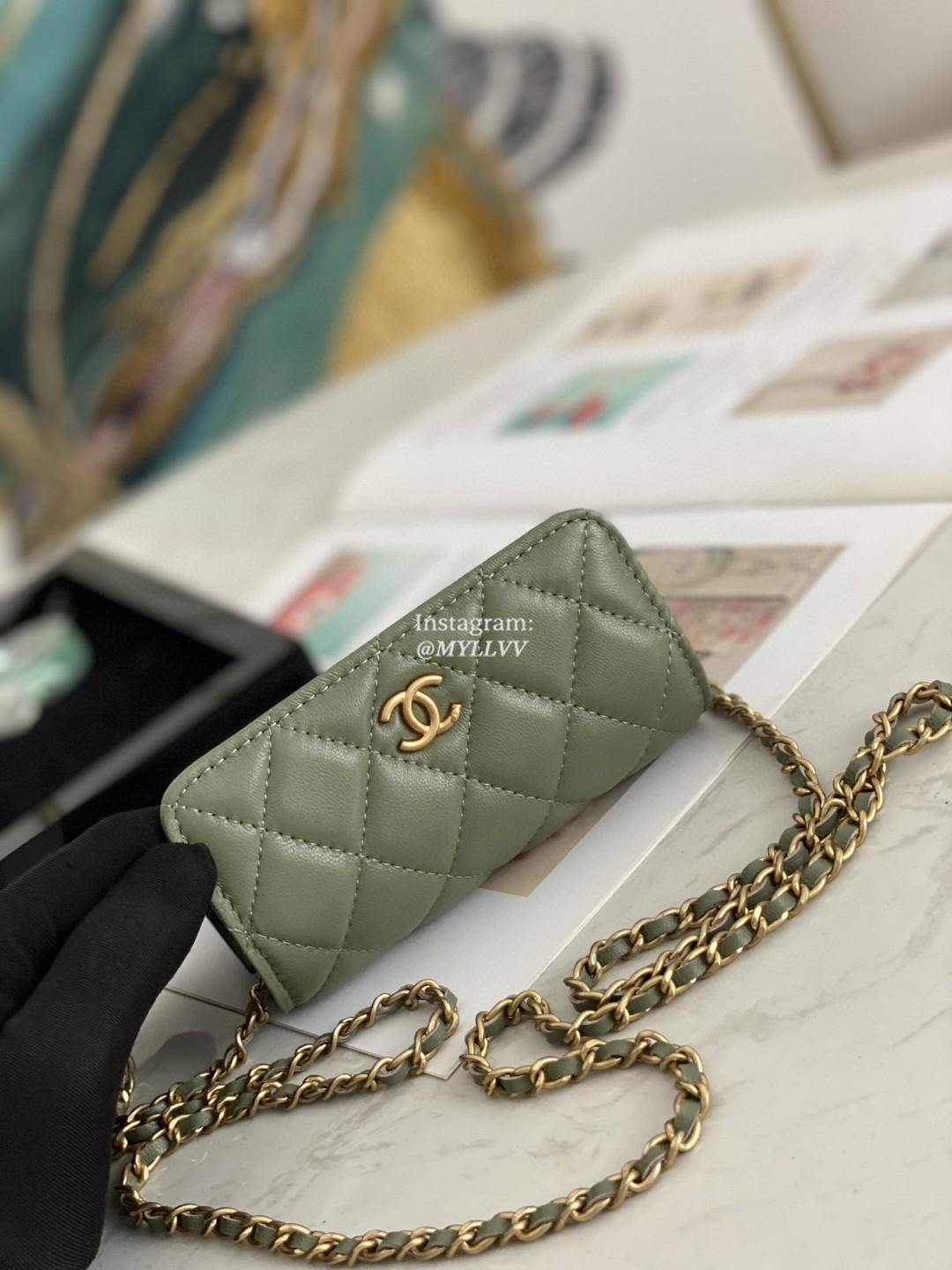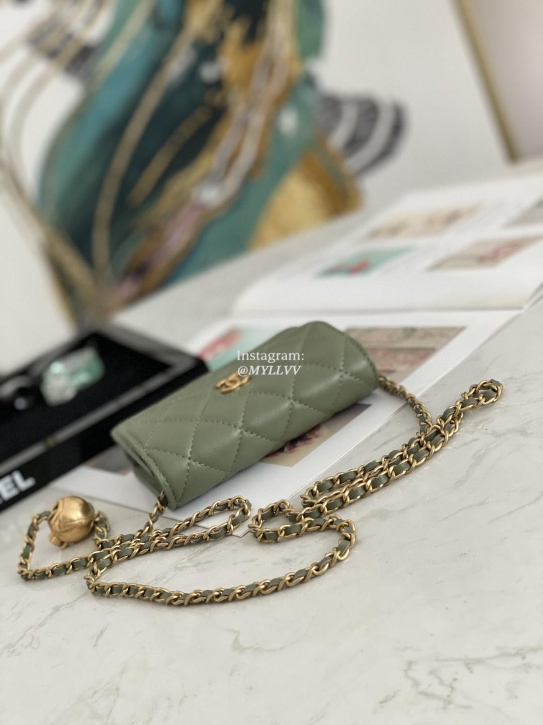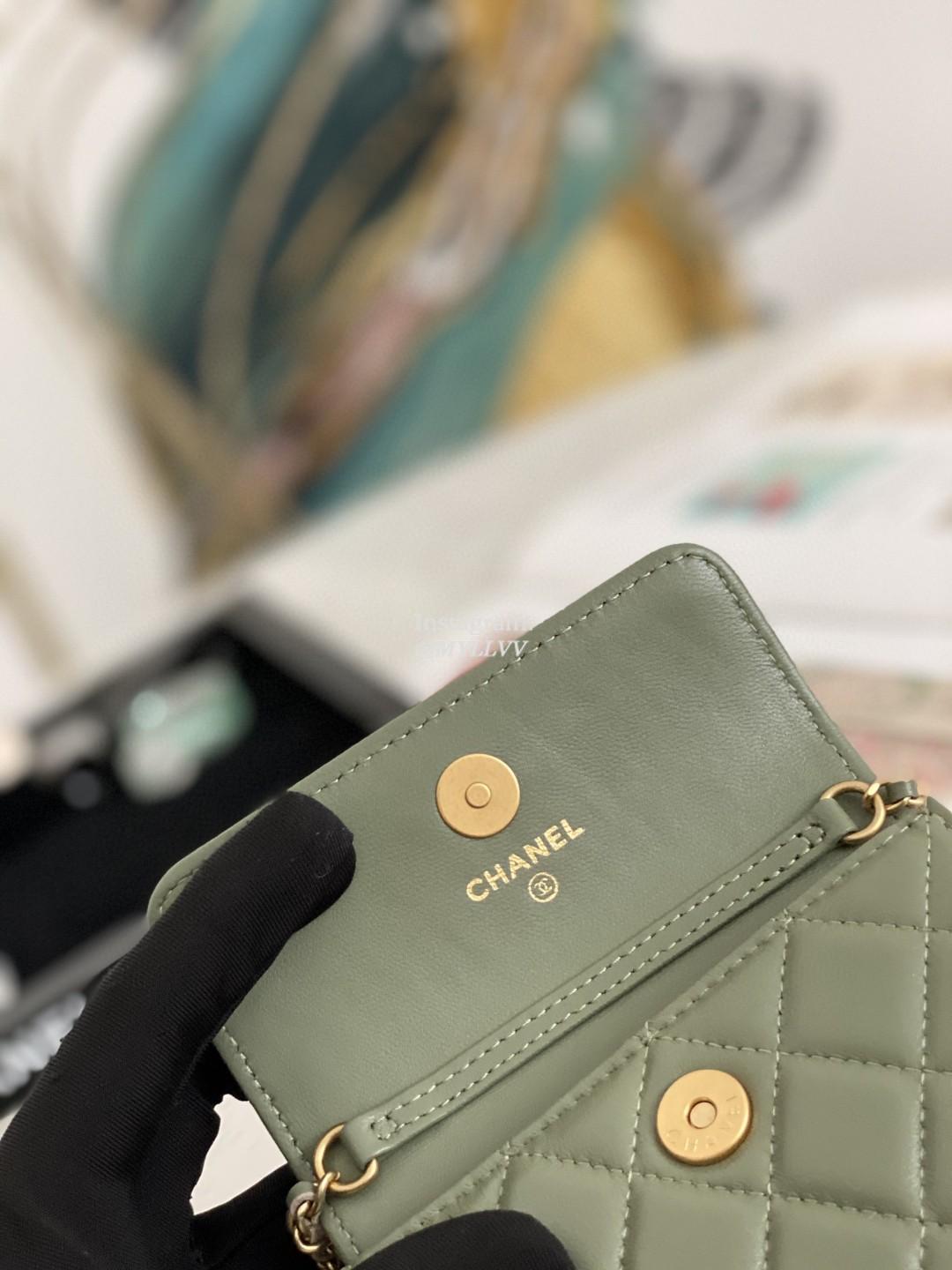 Top Quality Version:MYLLVV » Chanel Diamond Plaid Lambskin Mini Shoulder Bag Green With Gold 81135