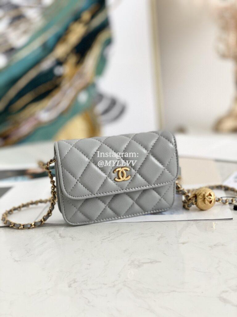 Top Quality Version:MYLLVV » Chanel Diamond Plaid Lambskin Mini Shoulder Bag Grey With Gold 1465