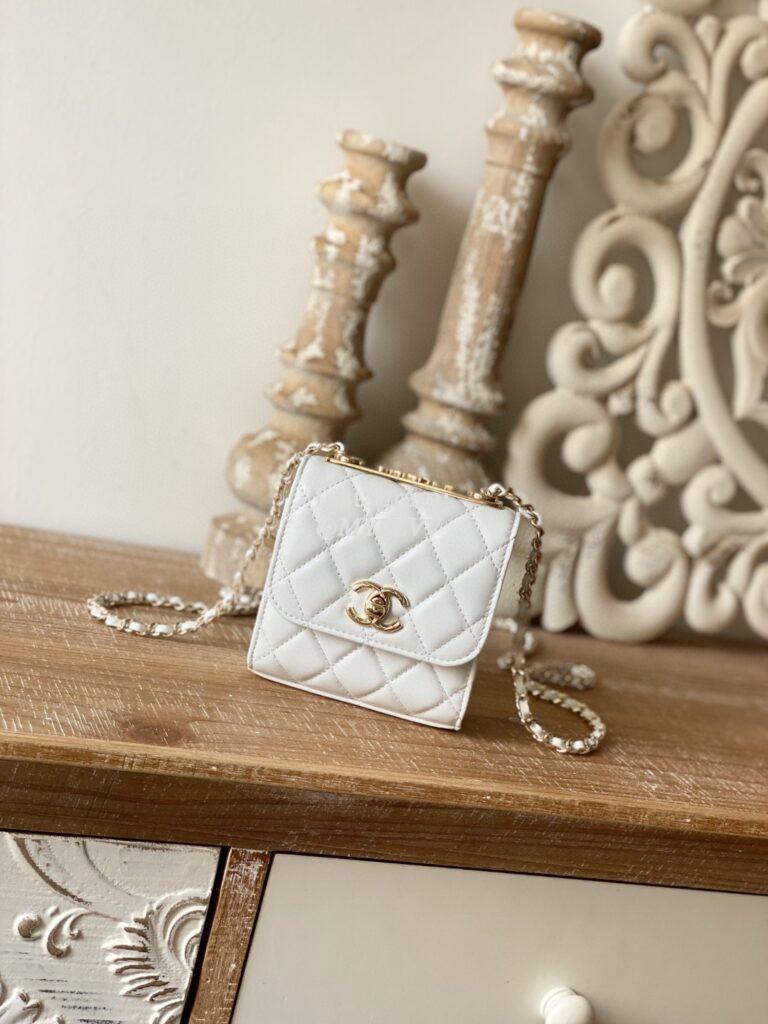 Top Quality Version:MYLLVV » Chanel Diamond Plaid Lambskin Mini Shoulder Bag White With Gold 88631