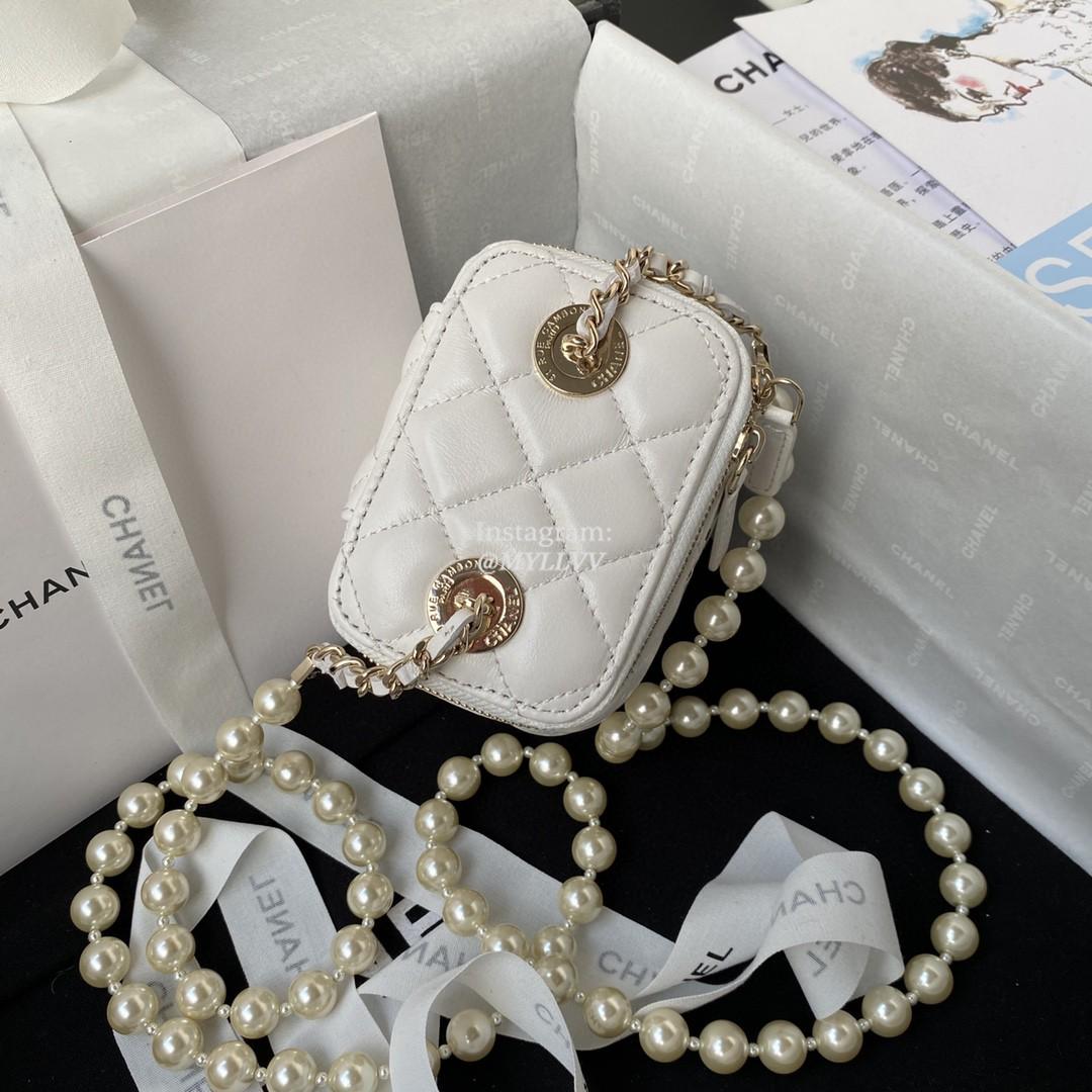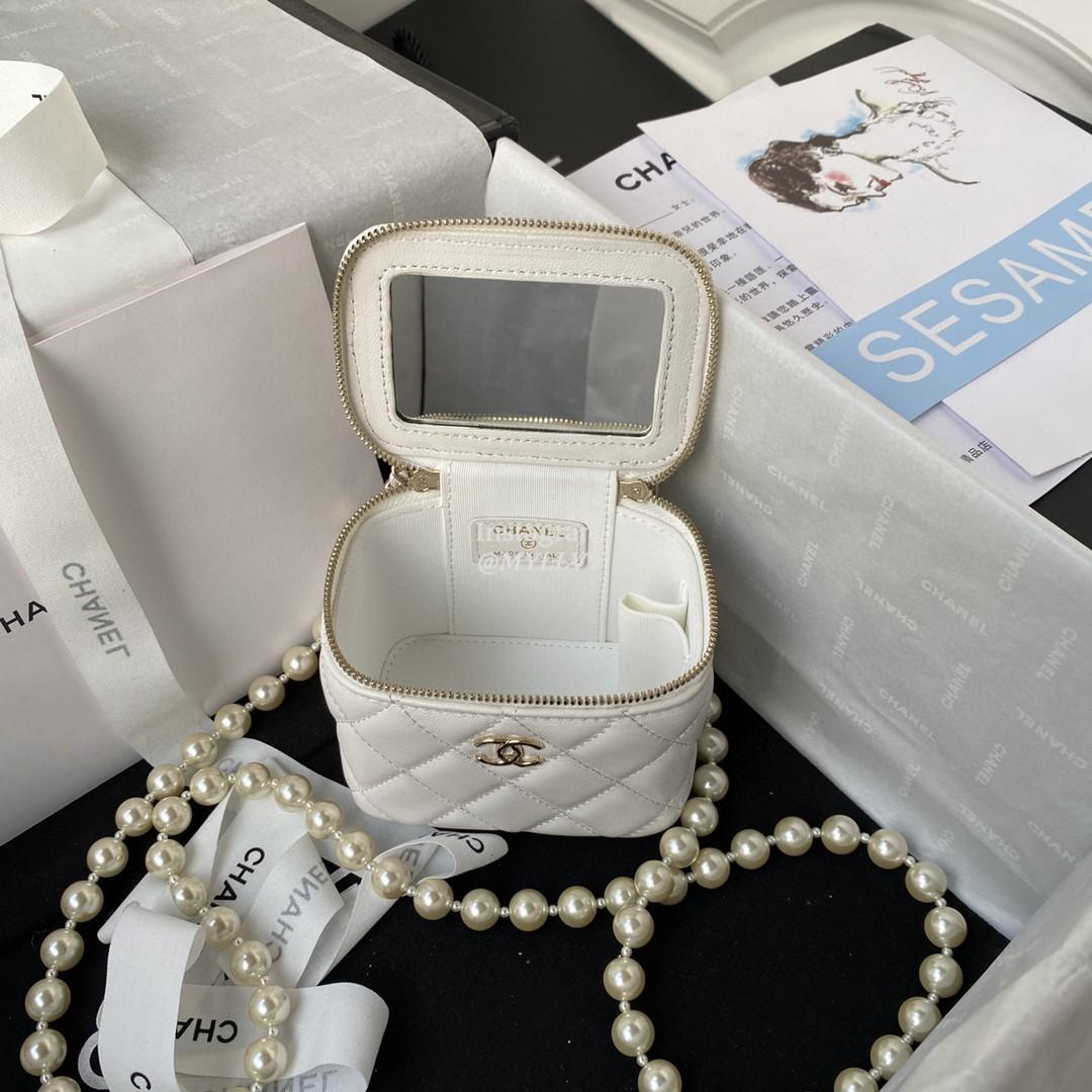 Top Quality Version:MYLLVV » Chanel Diamond Plaid Lambskin Pearl Cosmetic Bag White With Gold AP2581