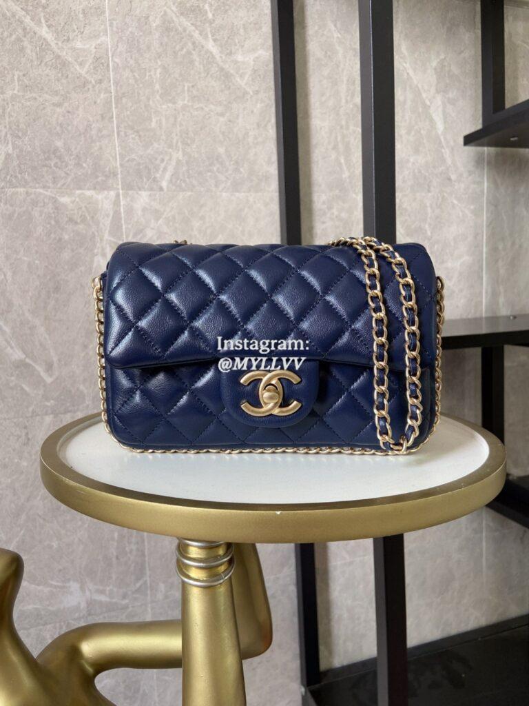Top Quality Version:MYLLVV » Chanel Diamond Plaid Lambskin Pearl Flap Bag Blue With Gold AS1740