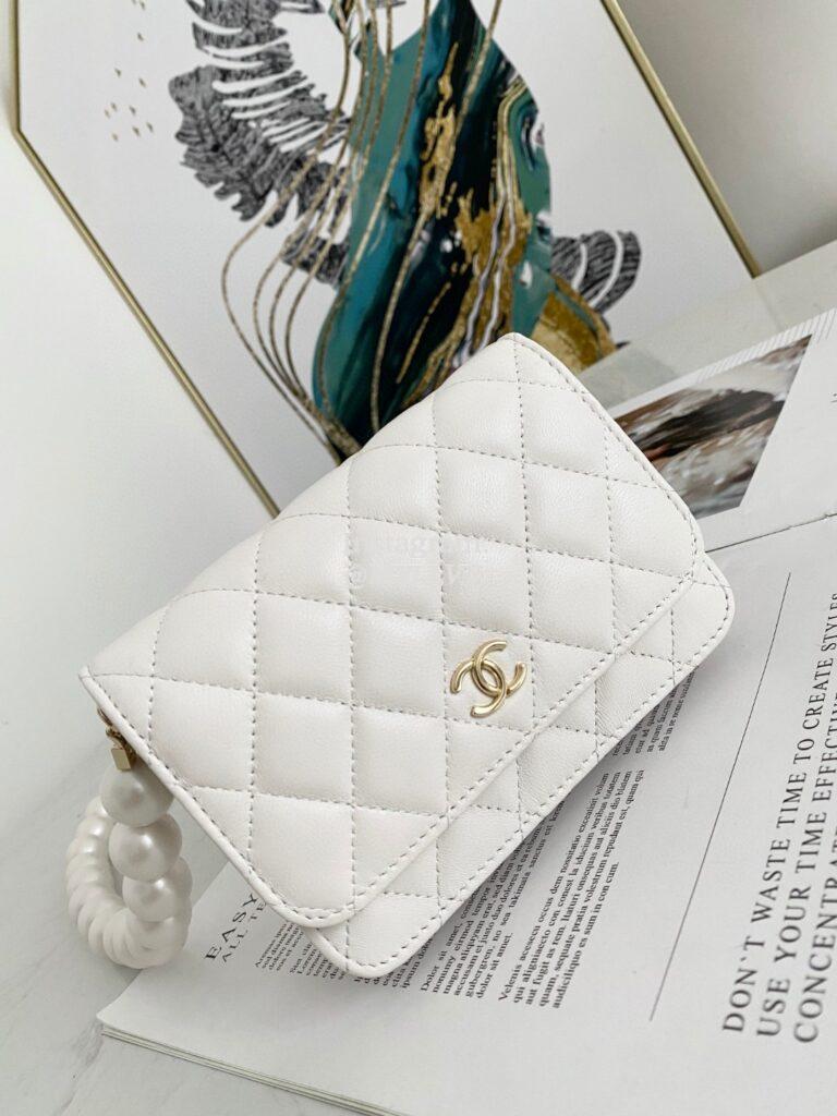 Top Quality Version:MYLLVV » Chanel Diamond Plaid Lambskin Pearl Shoulder Bag White With Gold 81026